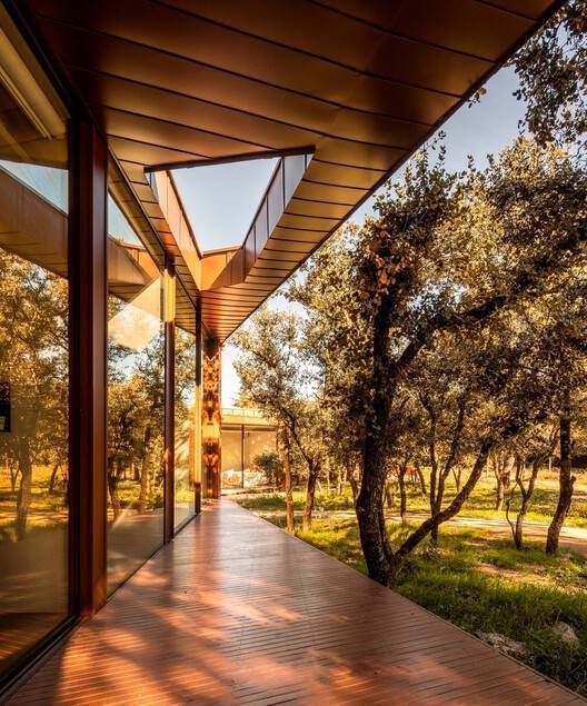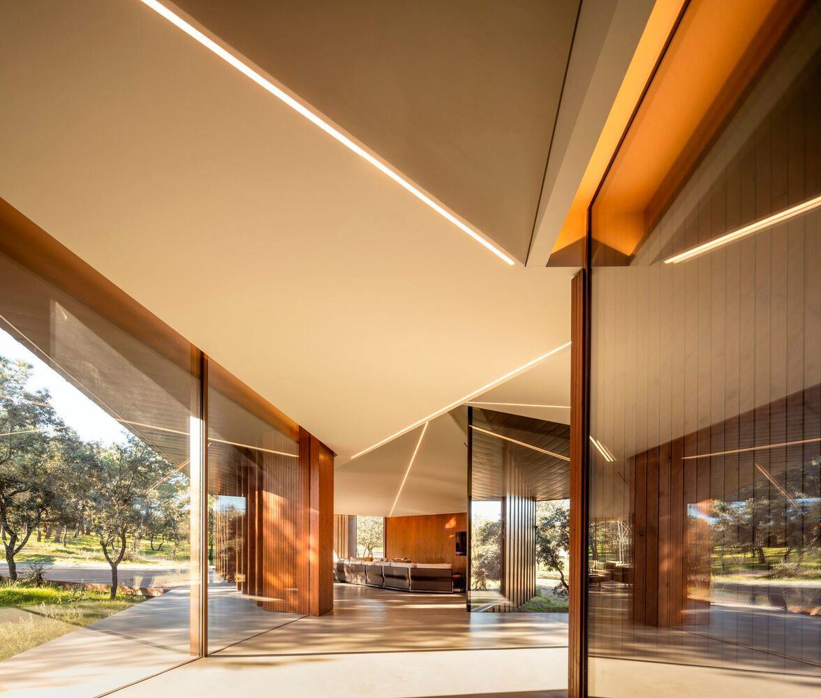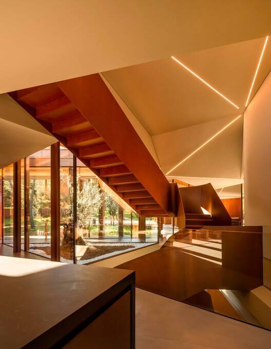 建筑与自然的融合:La Moraleja别墅的设计理念充分体现了建筑与自然的和谐共生。通过保留场地的成熟树木,并将建筑巧妙地嵌入自然空隙中,别墅仿佛是景观的有机延伸。这种设计不仅减少了对自然的破坏,还通过悬空的建筑结构和动态的光影效果,增强了建筑的轻盈感和与环境的视觉联系,实现了建筑与自然的完美对话。