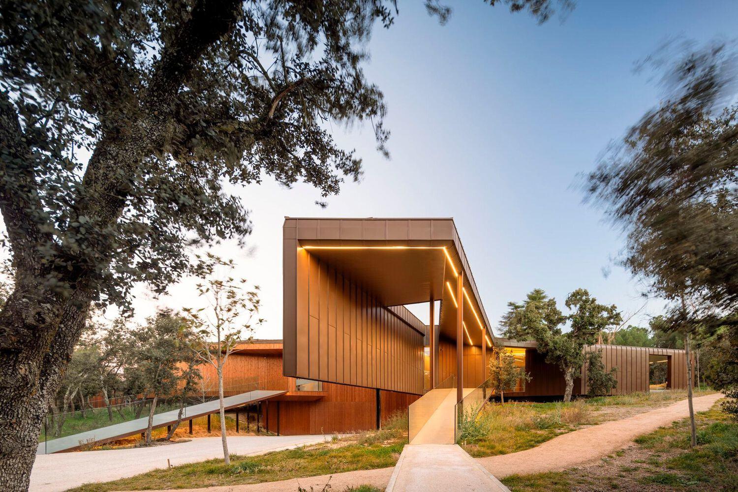 材料与景观的统一:项目在材料选择和景观设计上展现了极高的可持续性与美学追求。棕色VMZinc板和木板的立面设计,搭配绿色屋顶,与周围的自然环境无缝融合。景观设计保留了场地的自然地形和植被,用季节性开花的野草替代传统草坪,既减少了维护成本,又为环境增添了自然之美,体现了设计的生态智慧。