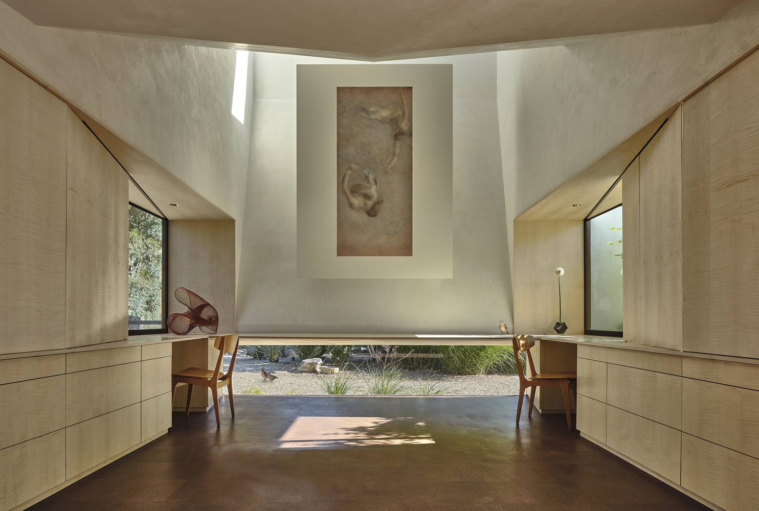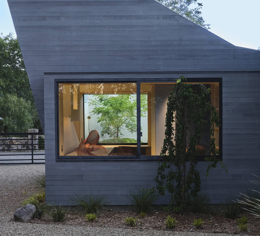 A traditional country 'dovecote' houses pigeons or doves, sometimes freestanding but often built into the ends of houses or barns. The architect researched the most advantageous height, orientation, proportion, and ventilation to encourage nesting doves –a process that informed both the shape of the exterior and interior space. The work also serves as a response to the proliferation of the 'modern farmhouse' style for new wine country homes –structures with the veneer of traditional farm buildings yet often out of scale with their surroundings, ill-sited, and ill-considered.