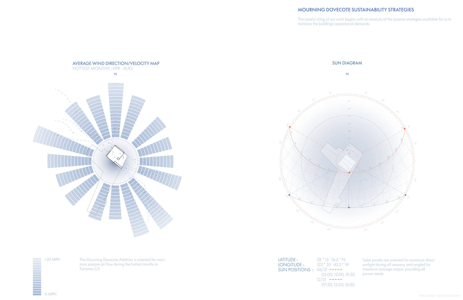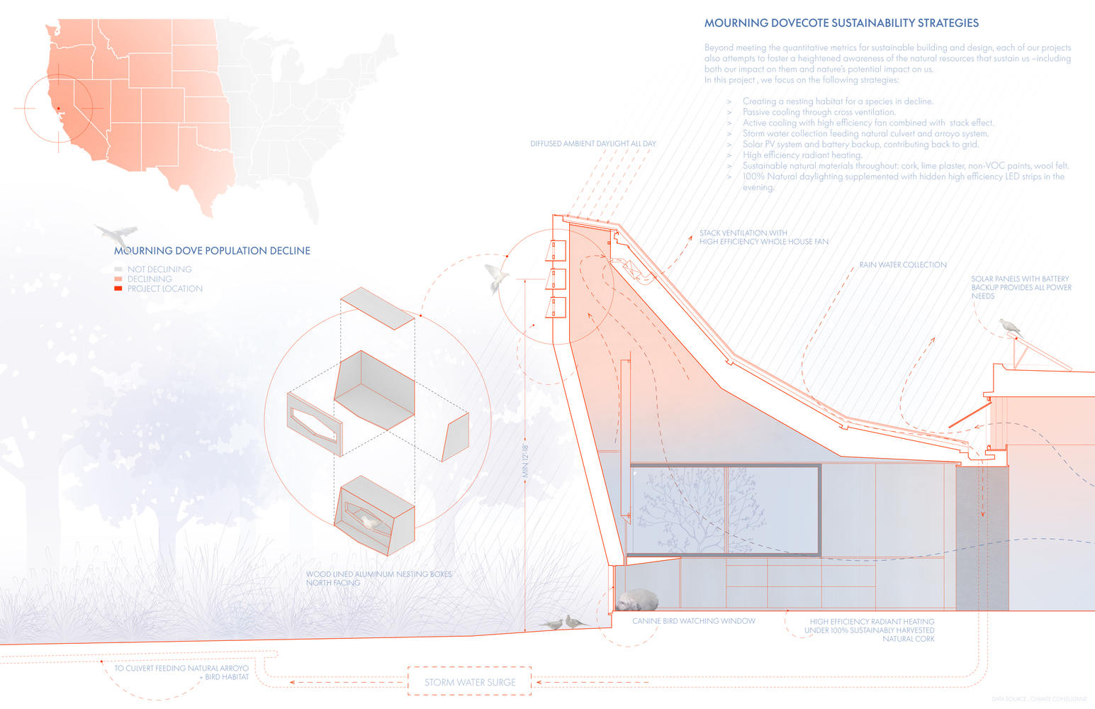 Text description provided by the architects. This 390 sq ft studio addition onto the owner/architect's existing home in Sonoma, California, takes inspiration from the site's abundant pairs of Mourning Doves. The Mourning Dove, one of the most widespread of all North American birds suffering the impact of habitat loss, is typically monogamous yet is a prolific breeder, raising up to six broods a year. Both sexes take turns incubating –the male from morning to afternoon and the female the rest of the day and night. Appreciation of these qualities and the dove's historical associations with peace and calm made the idea of cohabitation with them a critical leitmotif –one made even more potent in a global pandemic.