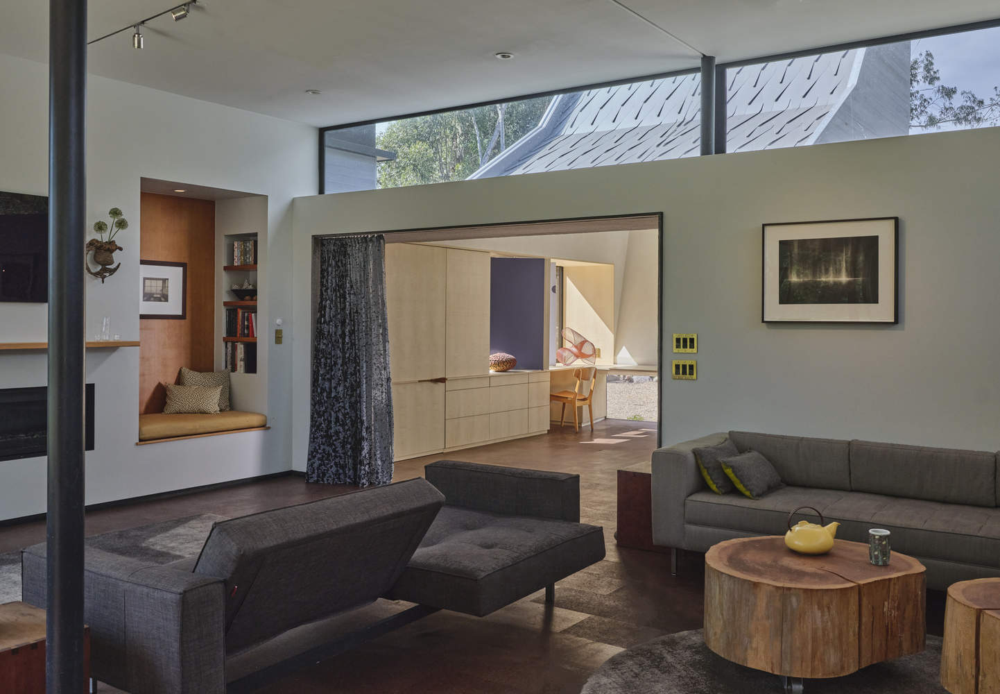 建筑师提供的文字描述这座390平方英尺的工作室位于业主/建筑师位于加利福尼亚州索诺玛的现有住宅上,灵感来自该地块上丰富的哀鸽。哀悼鸽是受栖息地丧失影响的所有北美鸟类中分布最广的一种,通常是一夫一妻制的,但也是多产的繁殖者,每年最多可繁殖六窝。两性轮流孵化——雄性从早上到下午,雌性在白天和晚上的其余时间。对这些品质的欣赏以及鸽子与和平与平静的历史联系,使与它们共存的想法成为一个关键的主题——在全球疫情中,这一主题变得更加有力。