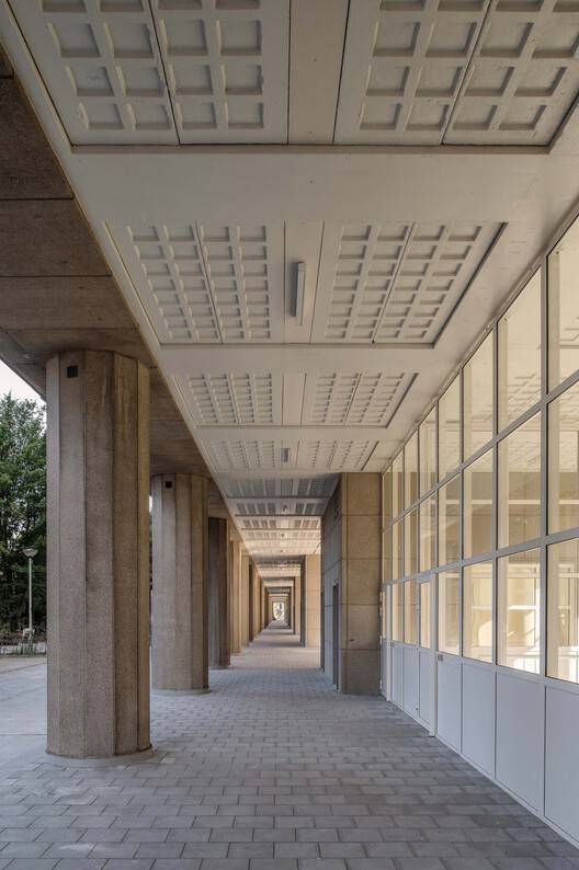 Text description provided by the architects. This project, encompassing four residential buildings with 672 social housing units, is a significant step in preserving the architectural heritage of the Luchtbal neighborhood. Originally designed by renowned architect Hugo Van Kuyck, the buildings have been carefully restored, respecting the original design while integrating modern standards of comfort and sustainability. The first building (block A) of the extensive renovation of the Langblokken complex was completed in September 2024.