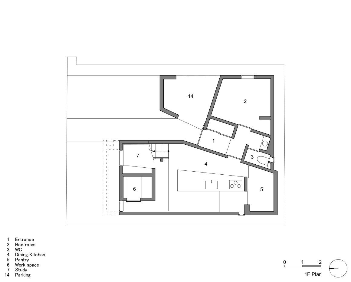 建筑师提供的文字描述该地块位于一个安静的住宅区,客户家的旧房子原来就建在那里,我们被要求设计一座新建筑来取代旧建筑。整体结构将建筑分为两部分,分别布置有LDK(起居、用餐和厨房区)和私人房间。主空间采用错层设计,增加了空间感,不仅在平面上,而且在横截面上都建立了联系,这样人们就可以在餐厅和厨房里与他人交流。