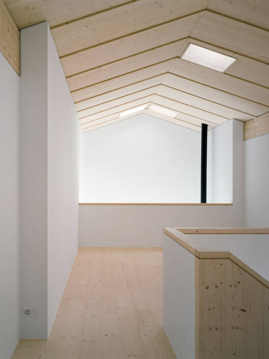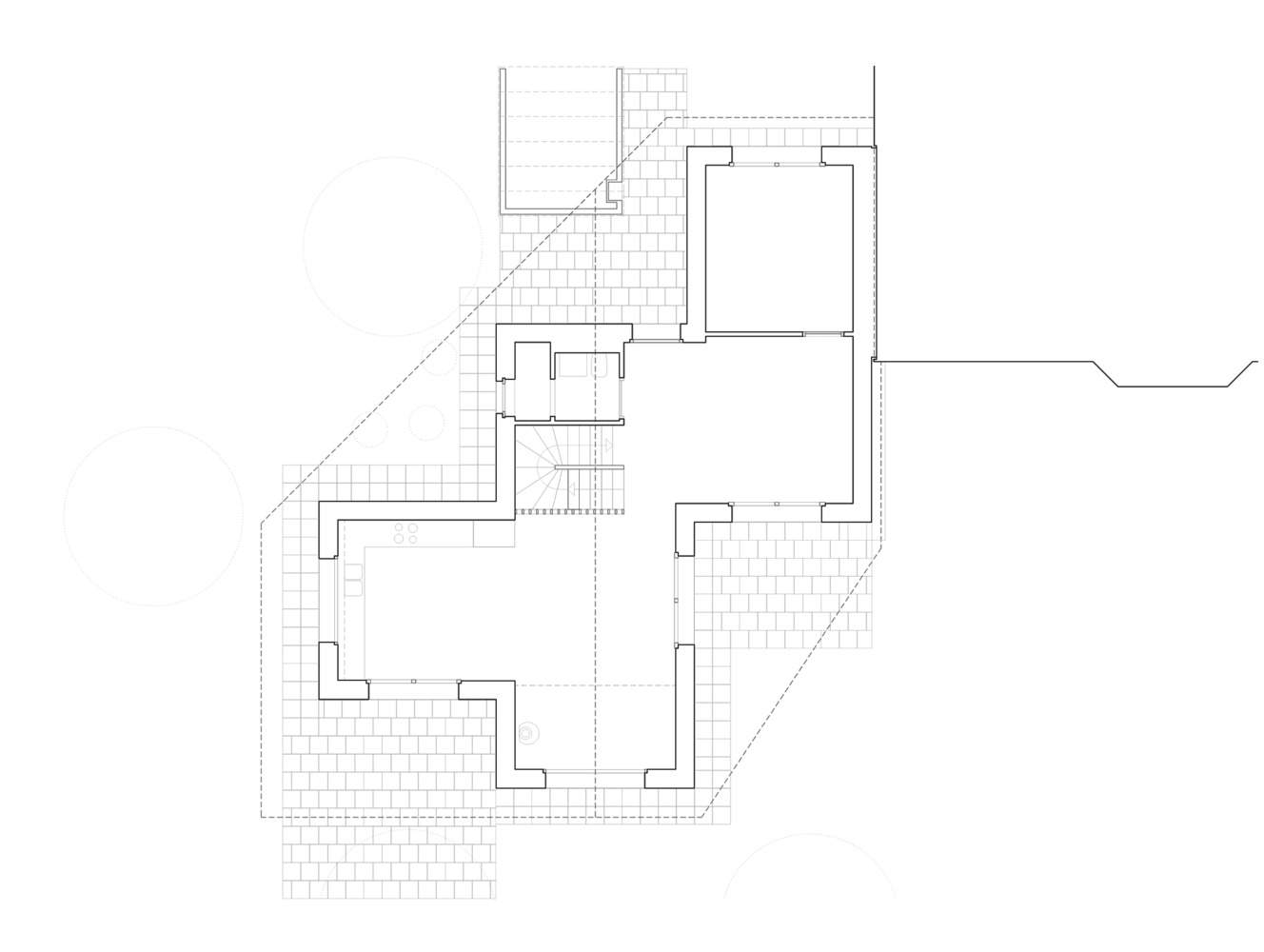 建筑师提供的文字描述该开发项目包括一栋约150平方米的两层别墅,与20世纪90年代末的现有家庭住宅相邻。它由一个大型的整体山墙屋顶组成,屋顶以方形网格为基础,容纳了不同的体积。这种零碎的组合,通过屋顶的统一,使这座房子的对角线变得平缓。