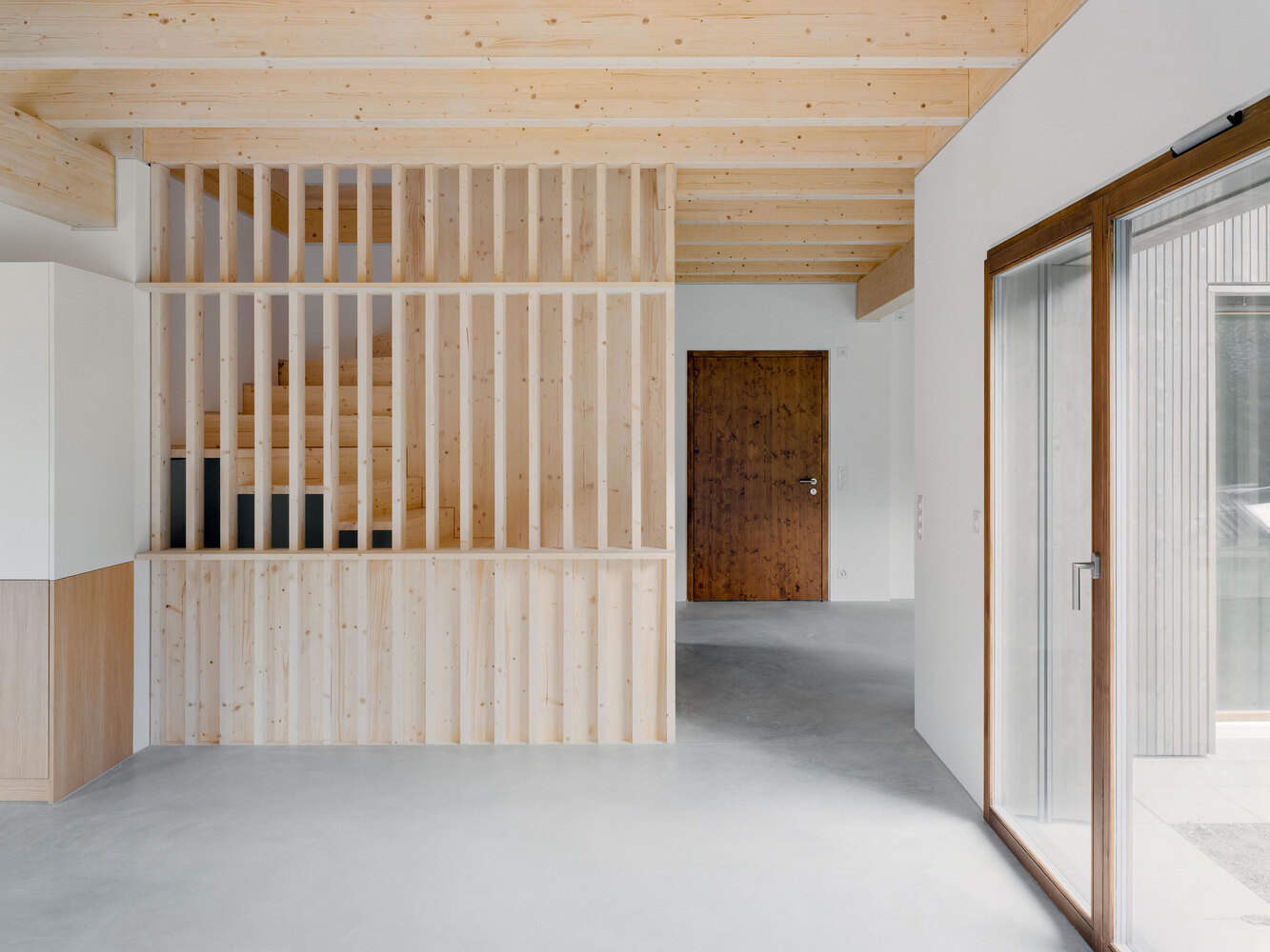 可持续性与节能:该别墅充分体现了对可持续建筑的关注。节能体现在建筑材料的选择上,使用木材结构和太阳能电池板,结合热泵系统,减少了对环境的影响,展示了建筑师对可持续性的承诺。这种对环保和节能的关注不仅减少了能源消耗,也提升了居住的舒适性,体现了建筑师对细节的关注,同时也考虑了建筑对环境的影响。