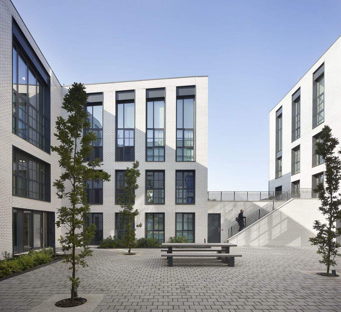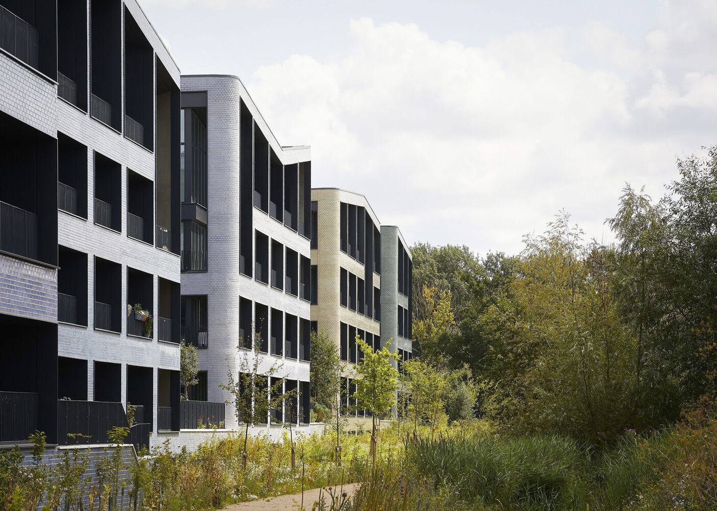卢比孔河借鉴了19世纪传统上与乡村环境接壤的仓库和磨坊类型,唤起了人们对其位置的历史连续性的感觉,清楚地定义了城市边缘。雕塑般的屋顶线条轻轻起伏,将不同的形式结合在一起,与剑桥郡的景观相呼应。该遗址的西侧有一个庭院街区,灵感来自剑桥著名的大学。从宁静的绿色和黄色到淡蓝色、天蓝色和银灰色,闪闪发光的釉面砖材料色调赋予了每个立面独特的身份。朝南的深凹阳台提供遮阳,同时提供无障碍的视野。