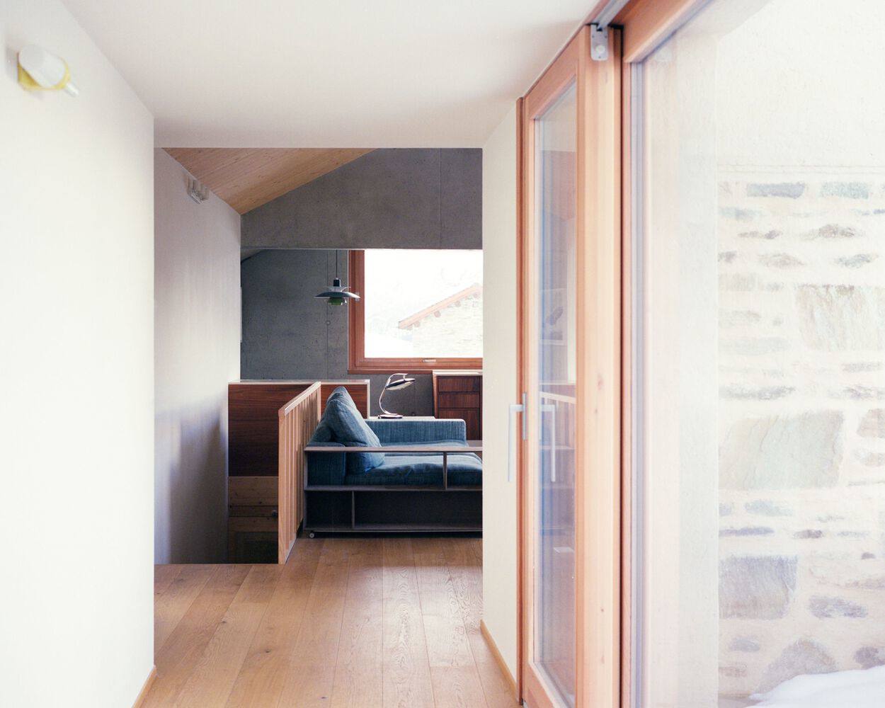 改造与新旧对话: Casa PJA/ES项目最引人注目的亮点在于其对原有建筑的改造策略,它巧妙地利用了体量和材料的对比来阐述建筑的演变过程。设计师并未掩盖新增部分的痕迹,而是通过石灰灰泥这一传统材料,在视觉上区分新旧结构。这种处理手法不仅保留了建筑的历史感,也赋予了它现代的表达。墙体上内退的开口设计,以及南立面拆除后的几何延展,都强化了这种新旧对比,强调了建筑从农村用途向季节性住宅转变的动态过程,使得建筑本身成为一个故事的载体。