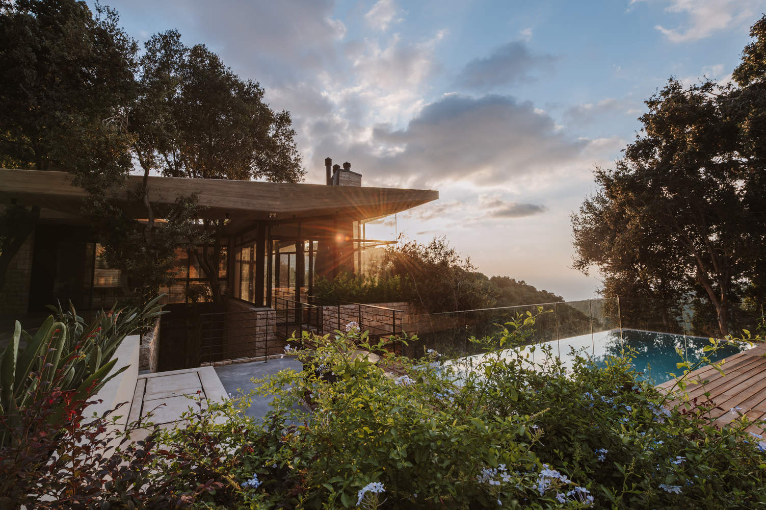 Text description provided by the architects. Perched on a stunning site overlooking the Mediterranean, this architectural project is a dialogue between nature and structure. Nestled within a landscape of towering oak trees, the design embraces the raw beauty of its surroundings, creating a home that feels both grounded and elevated.