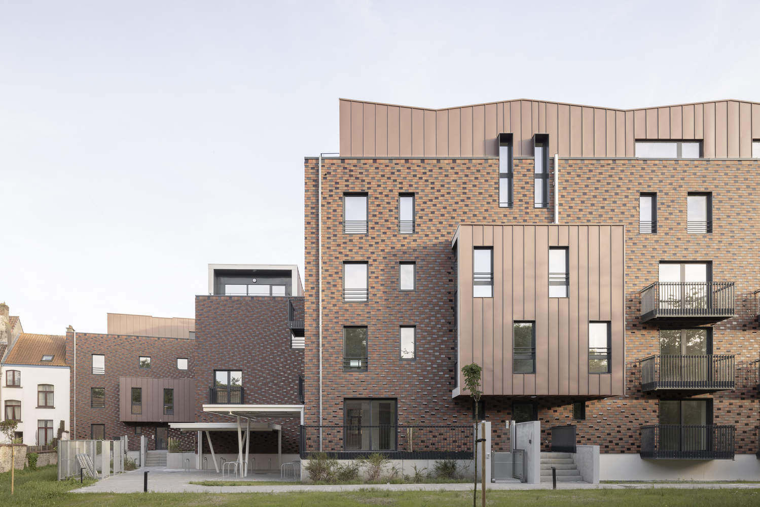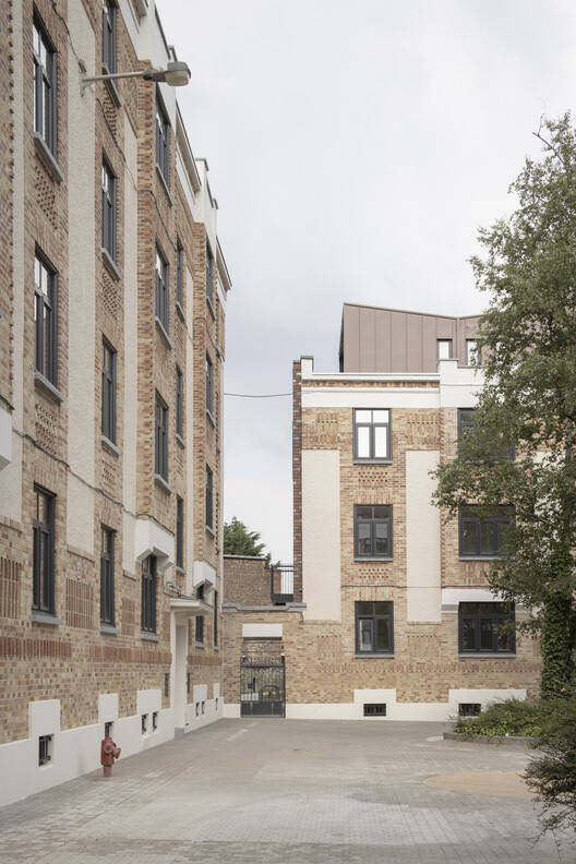 当代元素的融入与细节的考量: 项目的精髓在于在尊重历史的基础上,大胆引入当代设计元素。建筑师在后立面和屋顶上增加的体量,采用了轻质结构和预镀锌墙板,与建筑原有的立面形成了鲜明的对比,同时也保持了低调和与历史元素的距离。这种对比与融合,使得建筑在整体上既有历史的沉淀,又有现代的活力。同时,项目在细节上也体现了精益求精的态度,例如对花园的设计,既保证了公共区域的开放性,又通过种植设计为底层公寓提供了私密空间,并提供了自行车停车位,这些都体现了设计师对居住者需求的细致考量,从而提升了整体居住体验。