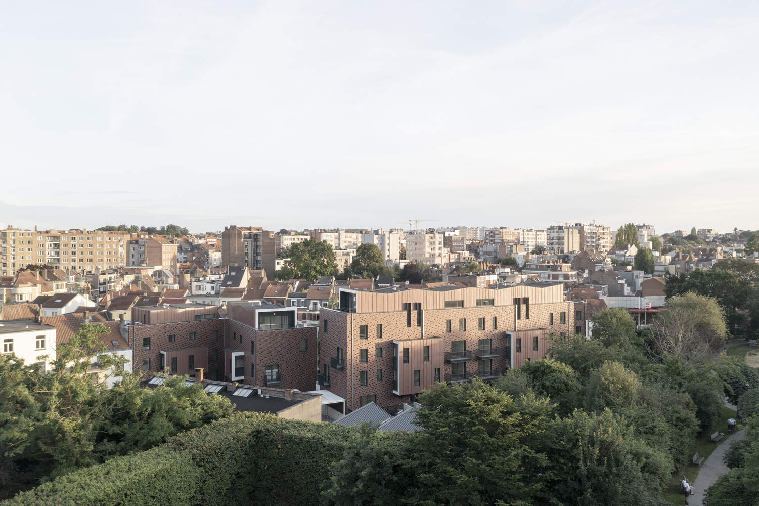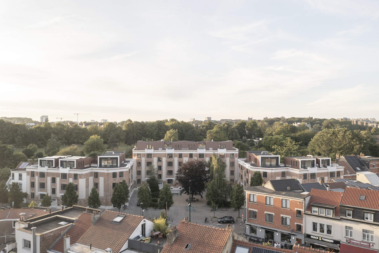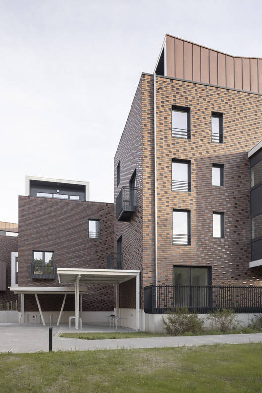Text description provided by the architects. The project involves the renovation of a group of three social housing buildings surrounding a tree-lined square located at the intersection of Rue de la Roche Fatale and Rue Montagne des Cerisiers. The complex is set in a verdant environment, in close relation to Georges Henri Park.