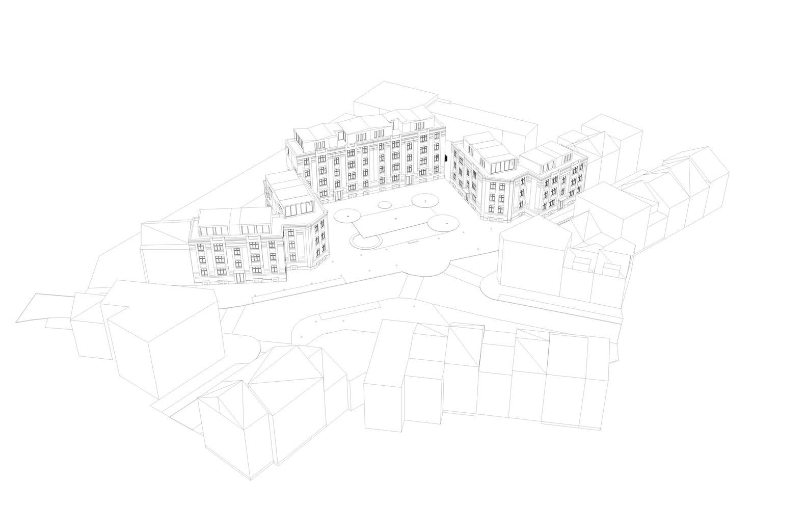 Interventions on the Buildings: The front façades are restored to their original configuration, with the replacement of 1970s windows by frames featuring harmonious and coherent divisions. The building entrance doors are also replaced, respecting the original design. Heritage elements of the façades are restored. Existing vertical circulation systems are maintained. The rear and side façades, which lack architectural features, are insulated and clad with flat terracotta tiles. The non-original pitched roofs are dismantled to restore the original roof shape, allowing the addition of new volumes.