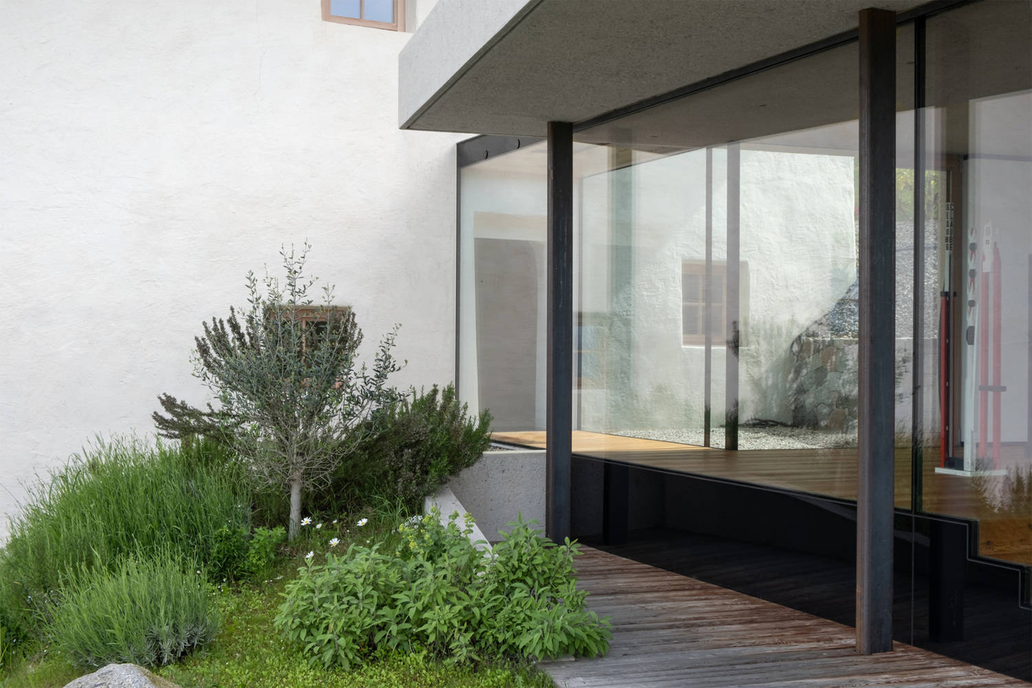 目的是保护该遗产的历史意义和独特性,同时促进其当代利用方式。这座历史悠久的建筑的起源至少可以追溯到1775年,以坚固的天然石墙、特色的小窗户和木制客厅为特色,并提供了对过去建筑时代的洞察。这种美学被刻意强调并与现代元素相结合。新扩建部分以其精确而引人注目的建筑和高质量的材料给人留下深刻印象。堆叠的外露混凝土重新诠释了老房子的粗石灰灰泥结构,而当地的落叶松木材则以现代的方式继承了传统的建筑风格。