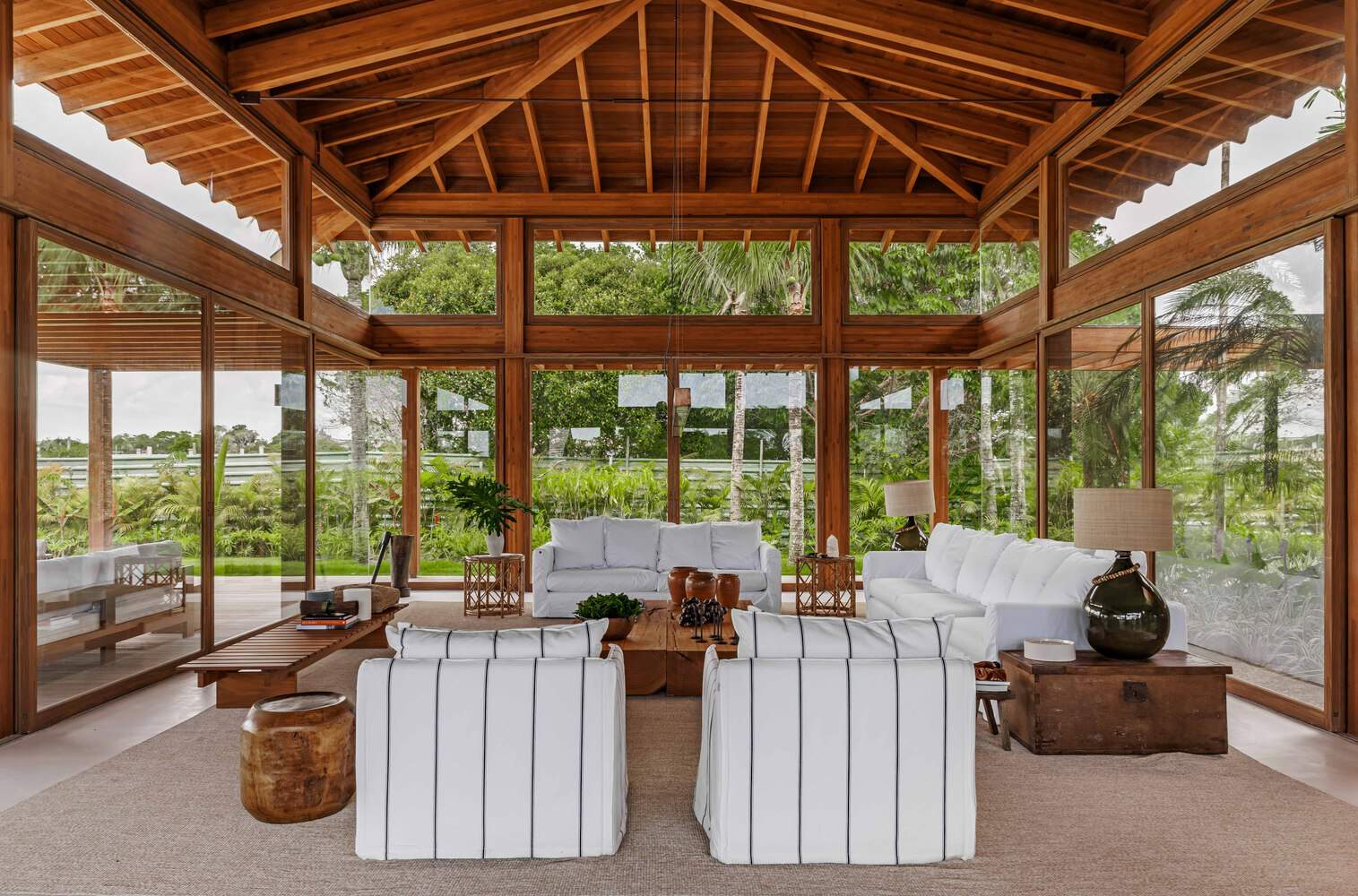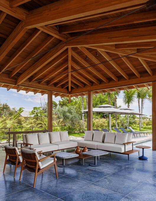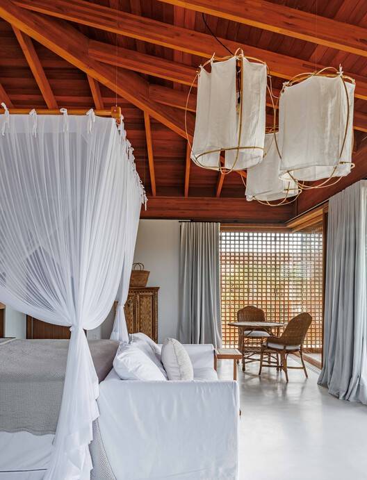 Text description provided by the architects. Located on the south coast of Bahia, in Trancoso, just 700 meters from the beach and 4.5 km from the famous Quadrado, an old fishing village and now full of shops and restaurants, the GS house was designed as a haven of tranquility and replenishment. of energy for a couple from São Paulo. Total integration with greenery and lightness were the client's main wishes for the house, guiding the entire development of the project.