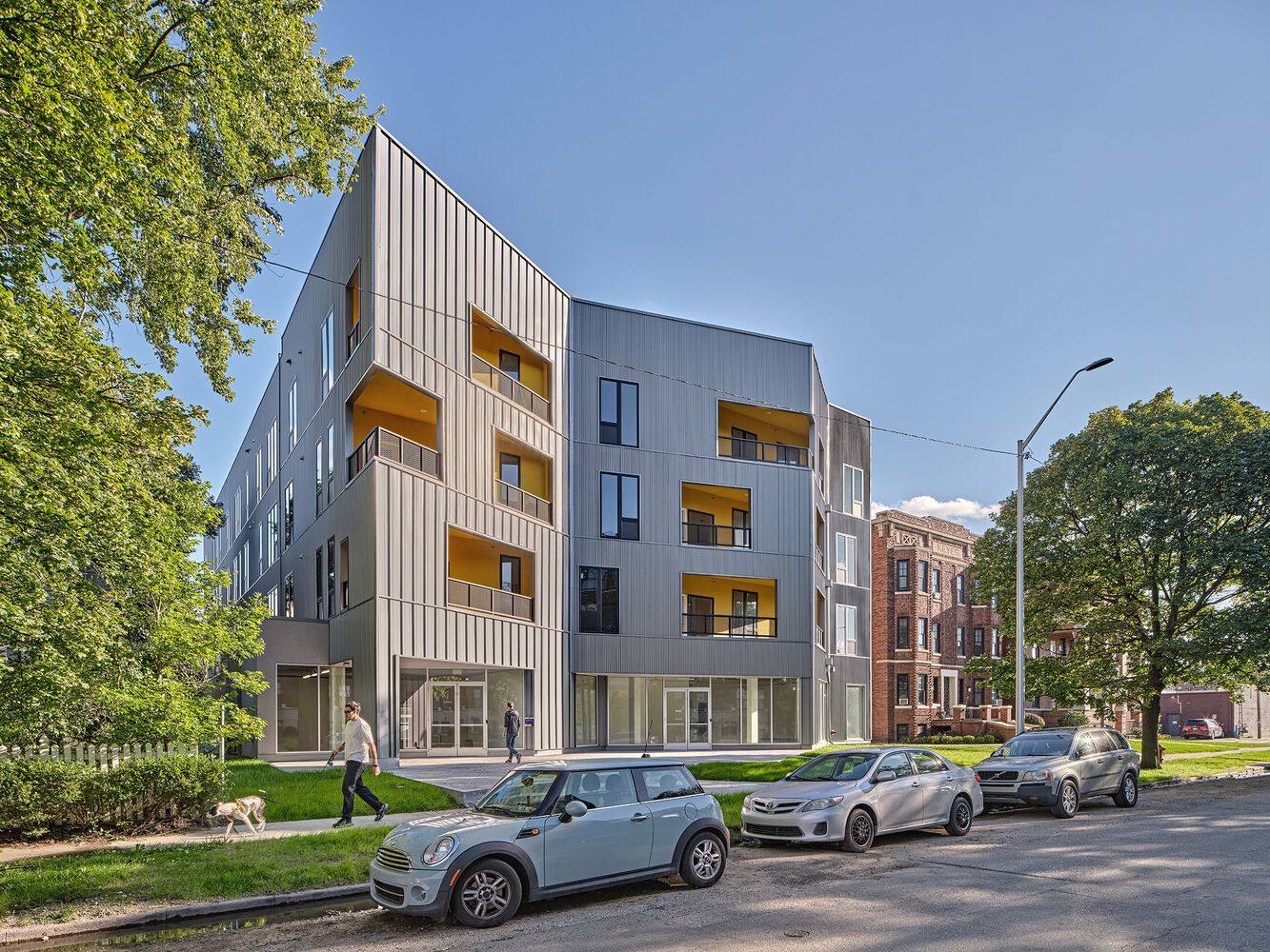 多样化的组合-该项目的住宅单元类型组合吸引了各种各样的需求、预算和生活方式。该项目包括36套紧凑型公寓,位于一个规模适中的底层商业空间和停车场之上。总共有9个工作室、18个一居室和9个两居室单元占据了C形结构,下面有25个停车位。