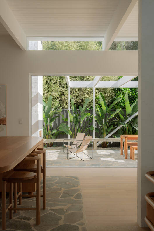 Text description provided by the architects. ISO/ is a family home born from a shared passion for Modernism and making. The alterations and additions to the existing dwelling were carefully handled to celebrate the existing form and materiality, carving out the center of the original U-shaped villa to insert a form that captures a Modern lifestyle.