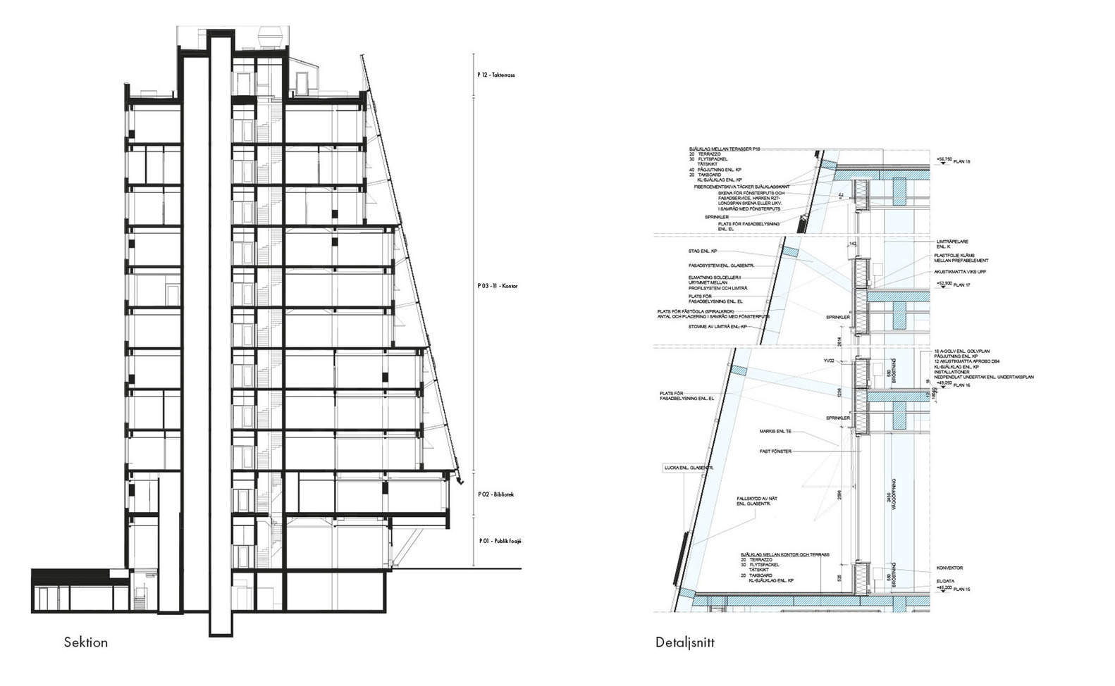 可持续性与创新木结构:Fyrtornet项目最显著的亮点在于其对可持续性和创新木结构的大胆应用。作为斯堪的纳维亚半岛最高的木结构建筑,它不仅是对传统建筑材料的挑战,更是对环境友好型建筑实践的积极探索。项目采用了木框架结构,并在外立面上采用了红雪松木瓦和双层玻璃幕墙相结合的设计,这不仅在视觉上创造了独特的对比,更在保温隔热和材料选择上体现了对可持续性的考量。此外,建筑还集成了太阳能电池板和地热能系统,进一步提升了其能源效率和环境友好性,展现出对未来建筑发展方向的深刻思考。