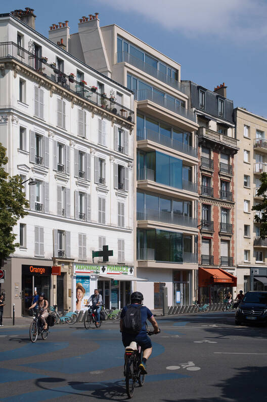 Text description provided by the architects. Situated at Place de la Nation in Paris, this project reinterprets the urban fabric through the reconstruction of a distinctive office building. The intervention respects the architectural scale of its surroundings while contributing a refined contemporary presence. The program includes 1,700 m² of retail space at ground level and approximately 6,000 m² of office space, designed to prioritize comfort, natural light, and spatial quality. The project responds to its setting with a restrained yet expressive architectural language. Two façades address Place de la Nation and Avenue de Taillebourg, referencing the rhythm and proportions of Haussmann architecture while introducing a contemporary material palette and refined detailing. This approach ensures an understated integration within the historic streetscape while establishing a strong identity.
