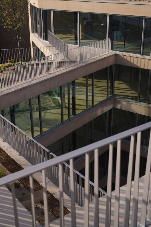 空间与材料的精妙构成:项目在空间和材料的运用上展现了极高的设计水平。建筑采用浅灰色混凝土作为主要的结构材料,借鉴了奥斯曼巴黎的石灰岩色调,同时通过水平层的浇筑,营造出一种安静而沉稳的质感。建筑师巧妙地运用大面积的弓形窗户,将城市景观引入室内,模糊了室内外的界限。材料的选择、光影的运用以及空间尺度的把握都体现了建筑师对细节的极致追求。项目通过对材料、光线、空间、比例的精心控制,创造了一种和谐而富有韵律的建筑语言,展现了建筑师高超的设计技巧和对建筑美学的深刻理解。