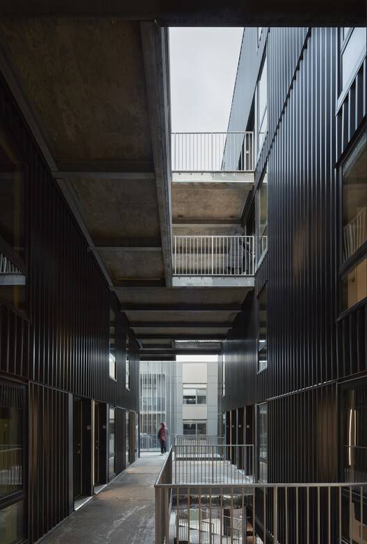 住宅设计的颠覆性创新:住宅设计是该项目的另一大亮点,它颠覆了传统公寓的模式,创造了全新的居住体验。通过将露天走廊引入设计,打破了封闭的内部空间,增强了住户之间的互动。创新的“跳停”配置,以及南北立面开放式楼梯的设计,不仅提高了空间利用率和能源效率,还为住户提供了独特的视野和体验。这些设计理念反映了对住户需求的深刻理解,并大胆地尝试了新的居住模式,为城市多户住宅的设计提供了有益的启示,展现了建筑师对未来居住方式的探索和思考。