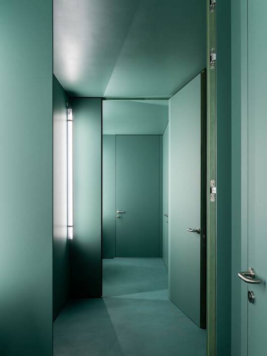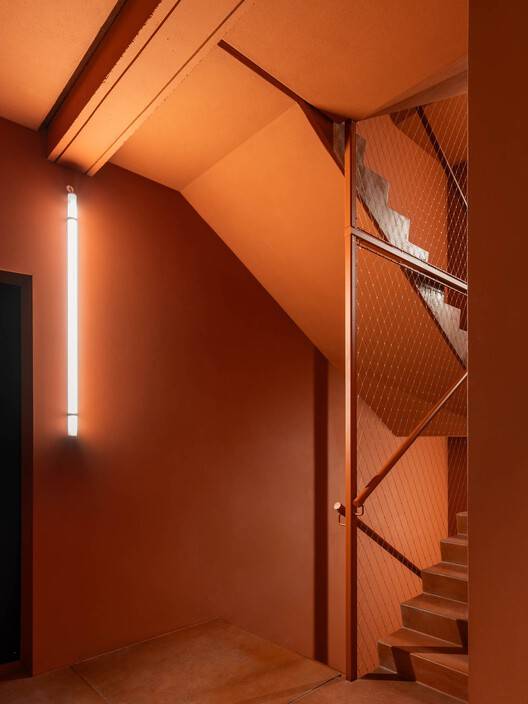 与典型的工业区截然不同,该建筑在屋顶上提供了一个独特的聚会场所,兼作放松和交流的广场。艺术家洛伦佐·梅森的作品增强了这一区域,使其成为超越通常办公室界限的表达平台。