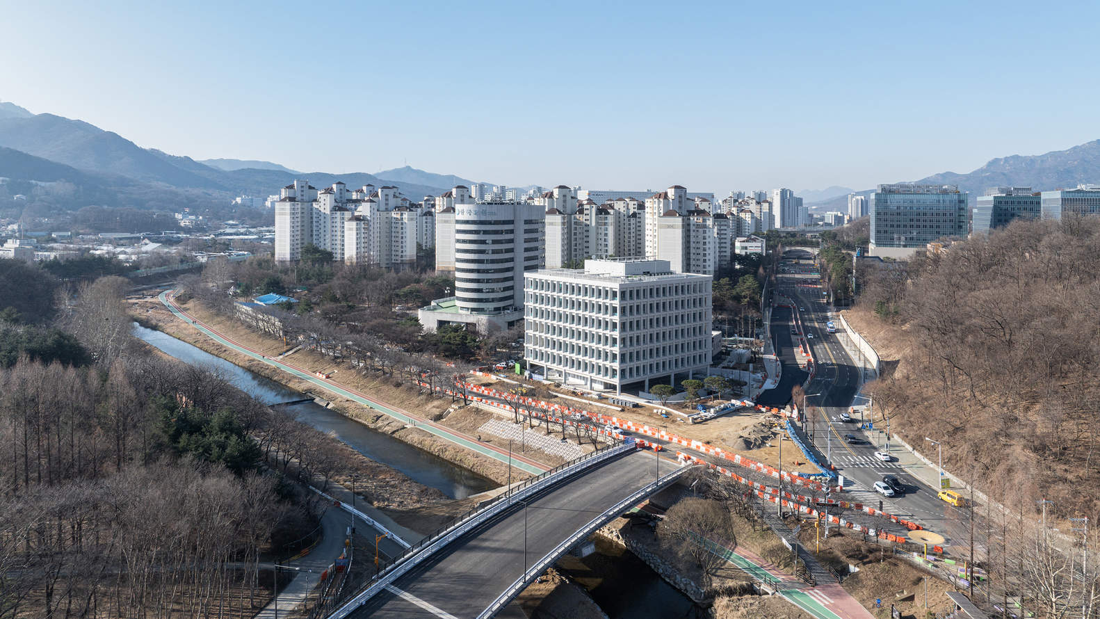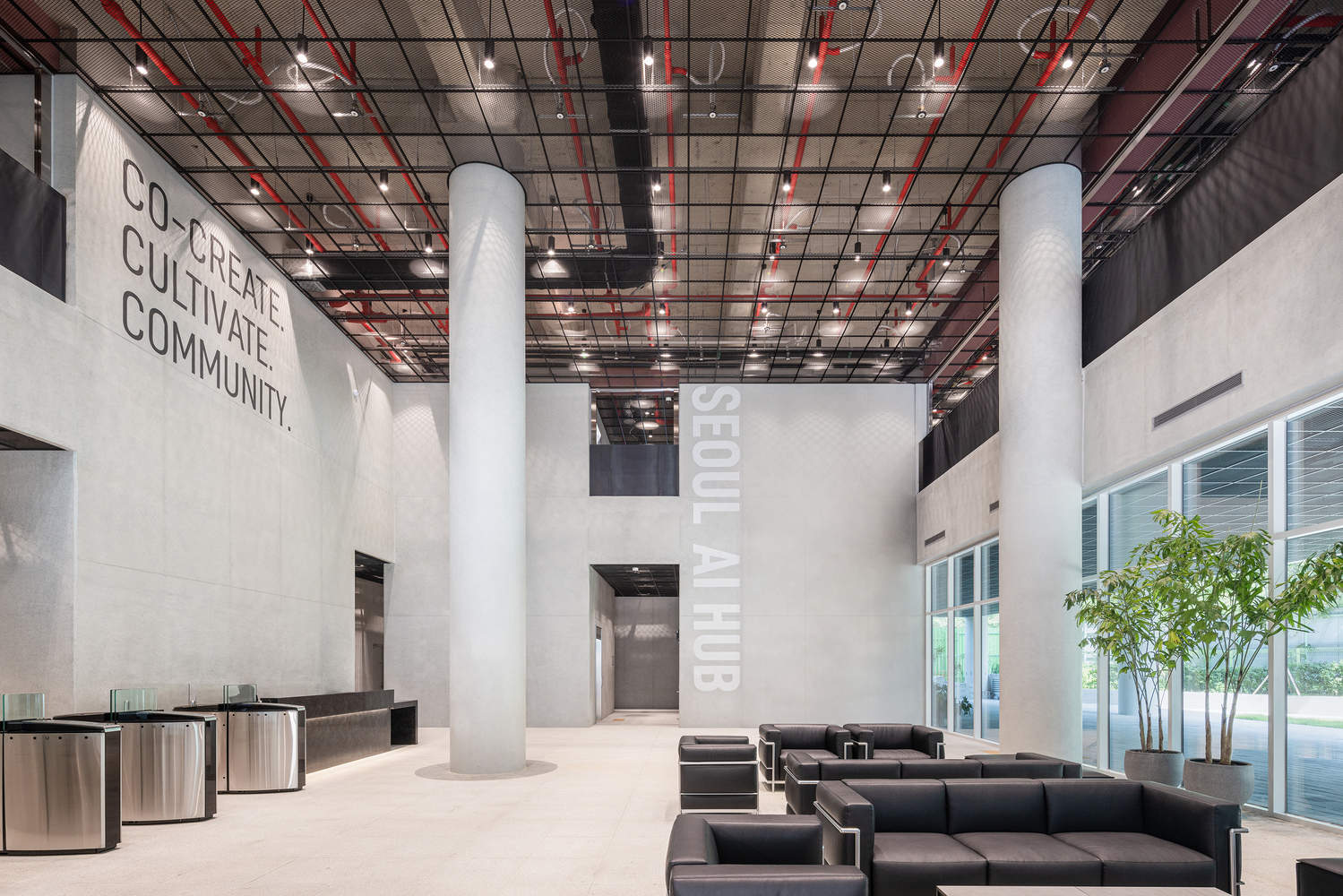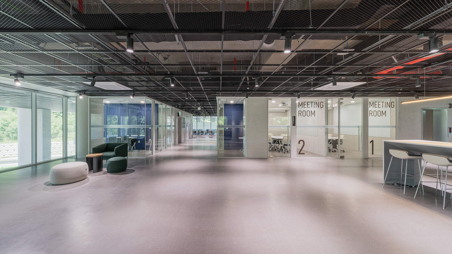 Mega Floor is a proposal for a new prototype of shared office facilities. Typically, office spaces are arranged around a core, with the four sides facing the outside. Shared and social spaces are relegated to the central area, which is small and environmentally isolated. In the framework of AI-centered 4th industrial revolution office spaces, considering cooperation with various industries, sharing, and synergy, the size of that area and its environmental performance need to be enhanced.
