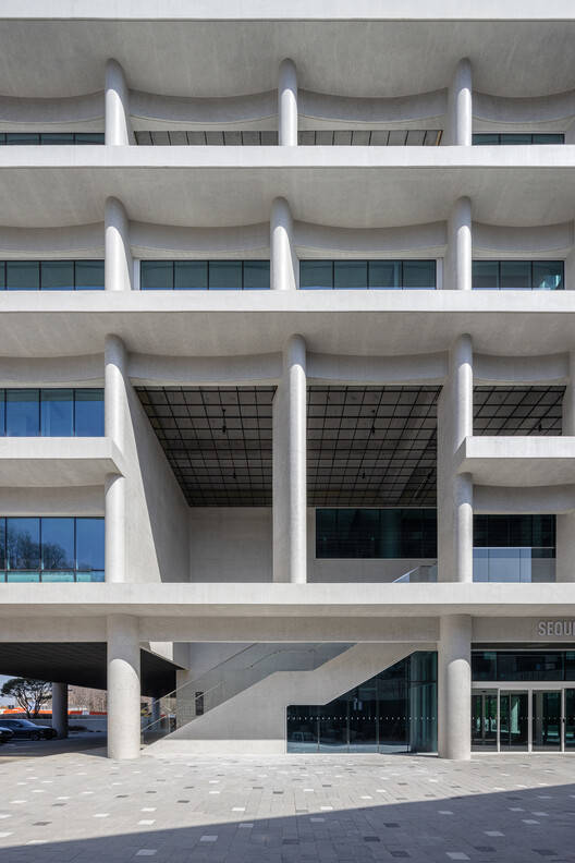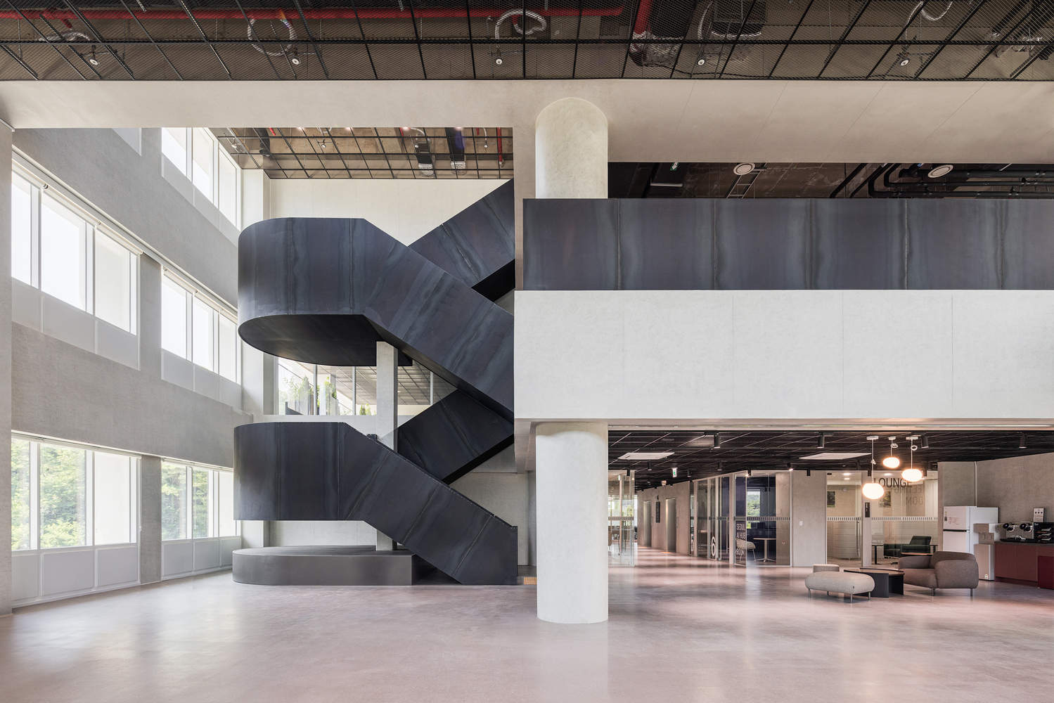 最终,每个平面图上的层次结构从私人和安全区域延伸到公共和开放空间,将居民公司(私人/安全)、核心区的共享办公空间(半私人/半安全)、共享空间(公共/非安全)和外部空间联系起来。这种方法也适用于横截面,其中两层楼的共享空间结合在一起,以扩大楼层之间的视线和流通。这与贯穿整个地板的空隙有关,调节照明、温度和湿度,降低能耗,同时提供舒适的室内环境。
