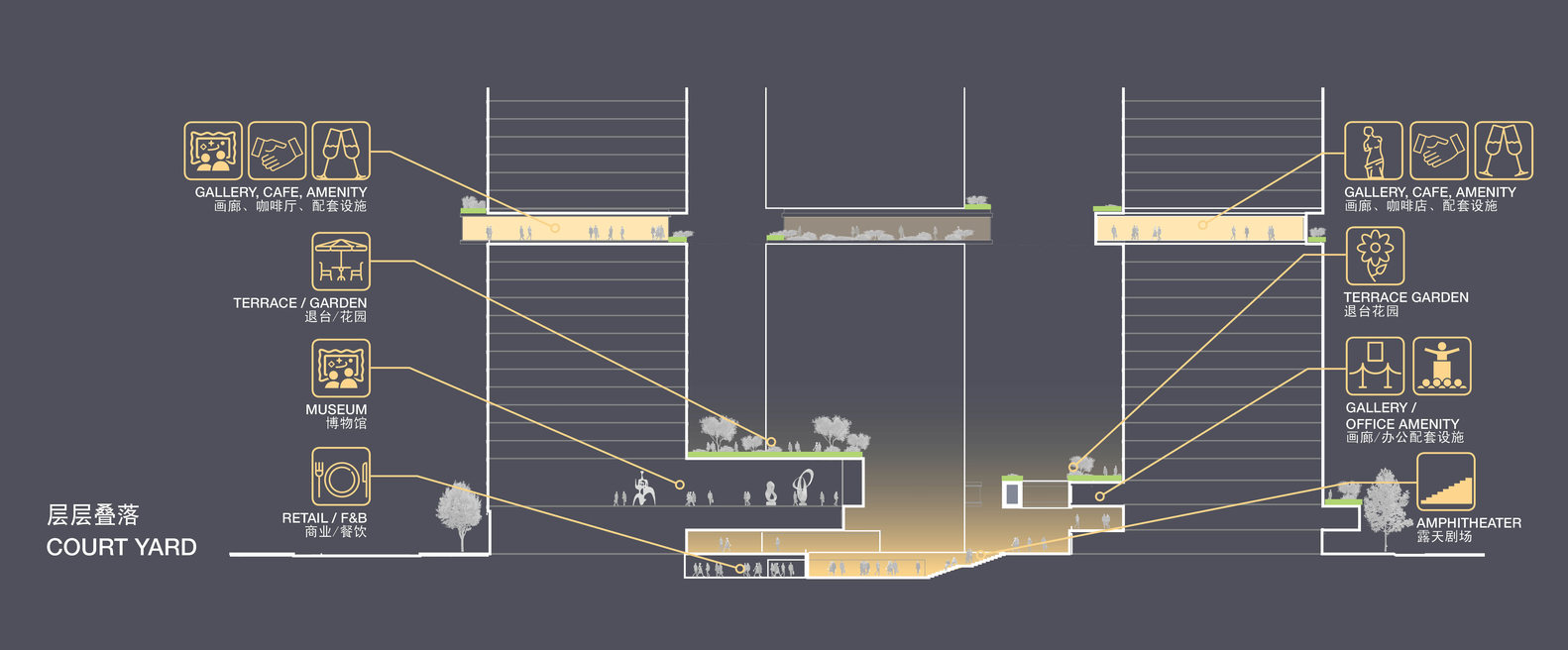从结构角度来看,该项目采用创新的工程解决方案来实现其雄心勃勃的悬臂。高级技术设计师Eric Engdahl说:“虽然大部分结构都是钢筋混凝土,但我们使用钢桁架进行主要的结构移动,并在公共广场上方的画廊采用双板系统。”。这种方法确保了悬挑廊道的结构稳定性,同时允许灵活的编程。