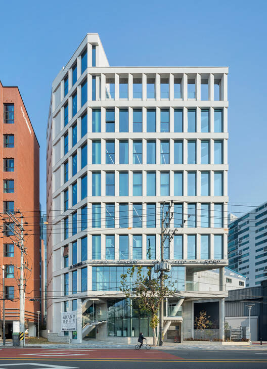该建筑位于Sungsudong 1号,是一个社区生活设施,包括一个地下室和地上十层。虽然该场地适合建造小型建筑,但其不规则的锐角形状带来了重大的设计挑战。主要目标是最大限度地提高场地的效率,同时满足客户对独特地块功能和有效利用的需求。