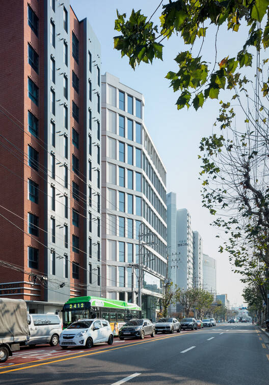 Text description provided by the architects. A-Building explores the architectural possibilities of acute-angled sites by reflecting the sharp geometry of the land onto its façade. This design approach creates fragmented in-between spaces that express the building's internal programs and establish connections with the surrounding urban fabric.