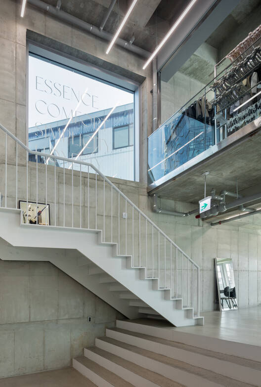 空间的创新利用:面对400%的建筑面积比和停车需求,设计师通过重新设计CIP布局,巧妙地解决了停车问题。停车入口被命名为“Boa Snake”,其独特的设计将停车与一楼空间融为一体,目前被用作时尚公司展厅和临时活动场所。这种对空间限制的创新适应,不仅提高了场地的使用效率,还为建筑赋予了更多的功能性和灵活性。
