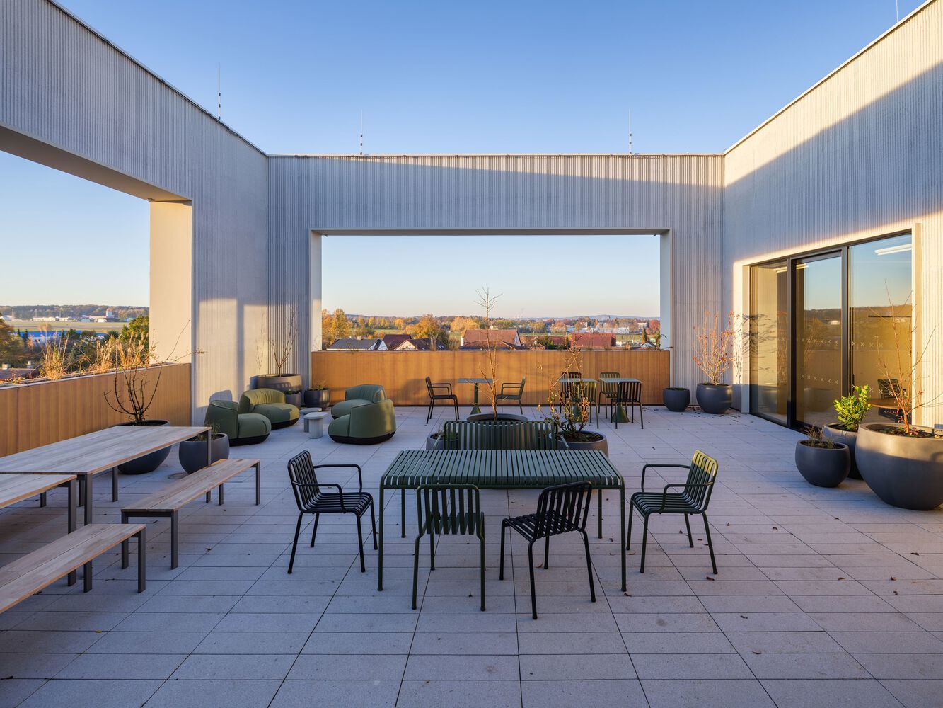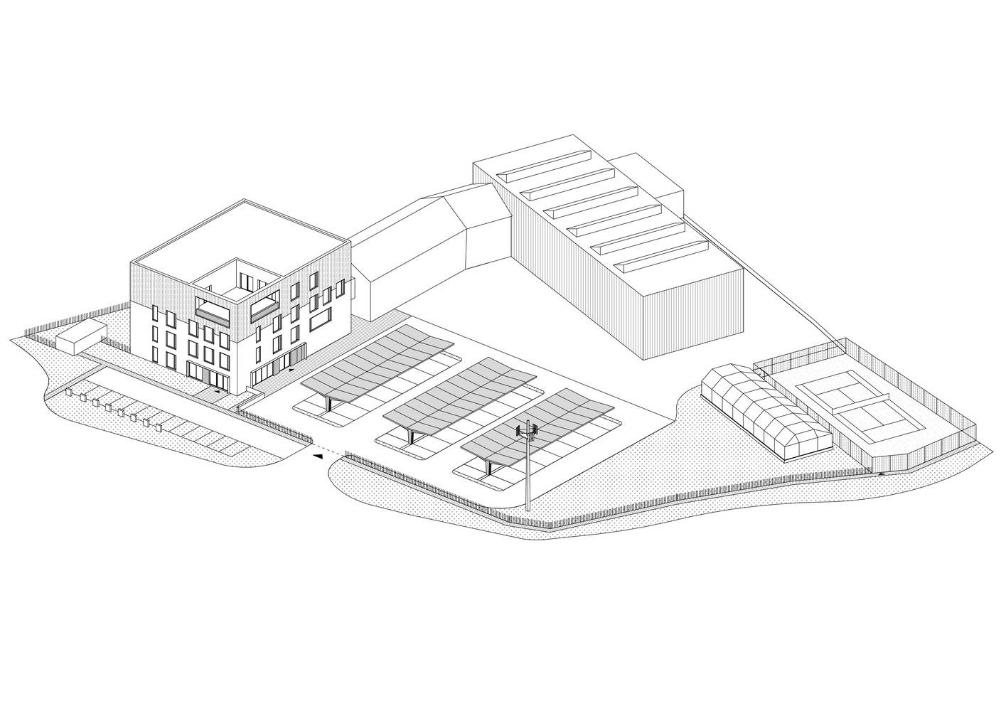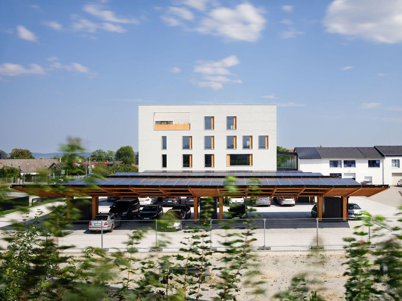 为了尽可能高效地收集太阳能,我们选择了最新的双面太阳能电池板技术,形成停车场上方的顶棚。建筑物的冷却或地板下供暖的热能供应主要由地热井和热泵提供。我们把这个项目分为各个阶段。作为一名总建筑师,我们监督所有的规划和设计过程。我们允许客户使用虚拟现实(VR)中创建的模型以真实的比例进入项目,以便更好地定位空间关系、感知维度和深度。因此,客户在评论和设计审批过程中节省了时间。该建筑于2024年下半年完工。