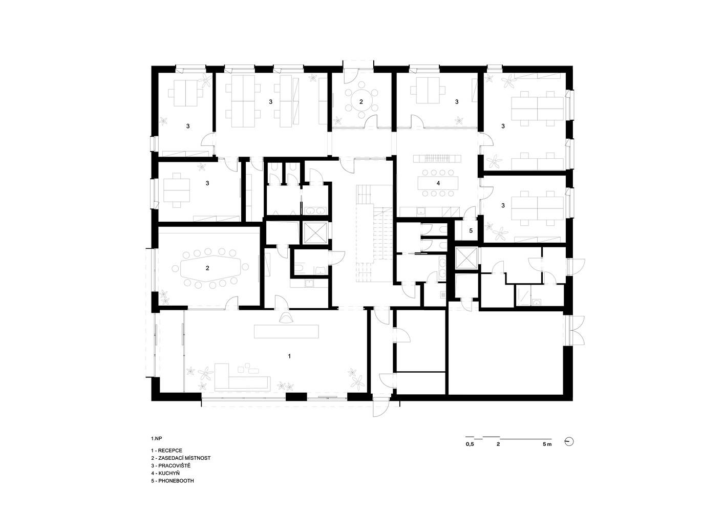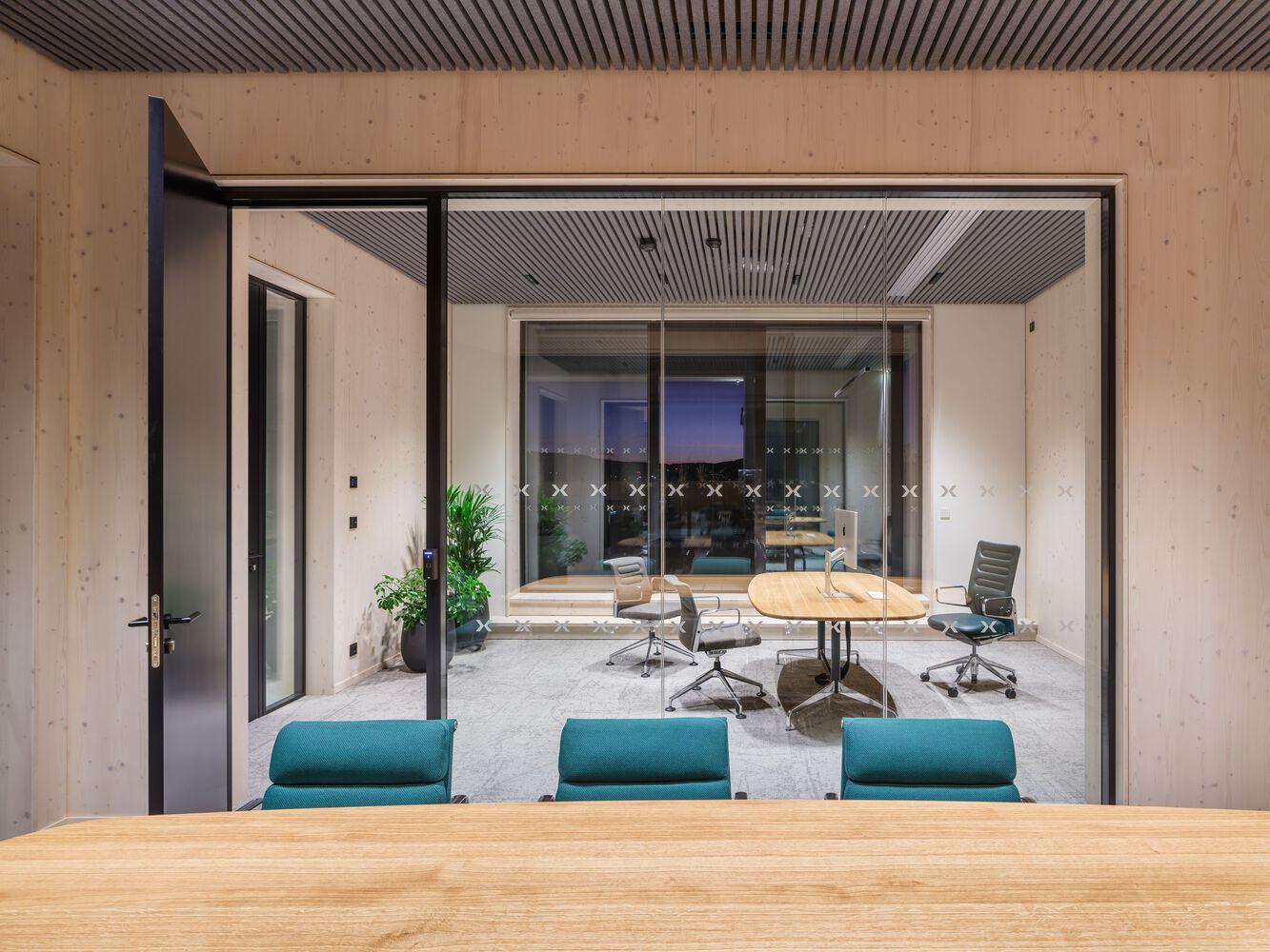 The client originally approached us only with a request for an interior solution for its office space in a building that was to be built from prefabricated wooden parts. Together, we discussed their original concept and agreed on the brand-new construction, which should underline the company's importance and representativeness of its headquarters. As the main working tool for creating documentation, we used Autodesk Revit, which allowed us to control the development of the project transparently. Using BIM technology, we have effectively managed all processes and construction phases.