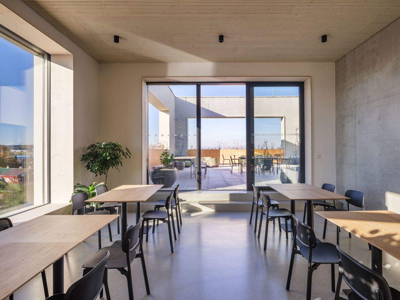To harvest solar energy as efficiently as possible, we chose the latest technology of bifacial solar panels forming the canopies over the car park. The supply of thermal energy for cooling or underfloor heating of the building is primarily provided by geothermal wells and heat pumps. We enshrined the project in all its phases. As a general architect, we oversaw all the planning and design processes. We allowed the client to enter the project on a real scale using a model created in virtual reality (VR) to orientate better in spatial relations, perceive dimensions, and depth. Thanks to this, the client saved time during comments and design approval. Completion of the construction happened during the second half of the year 2024.