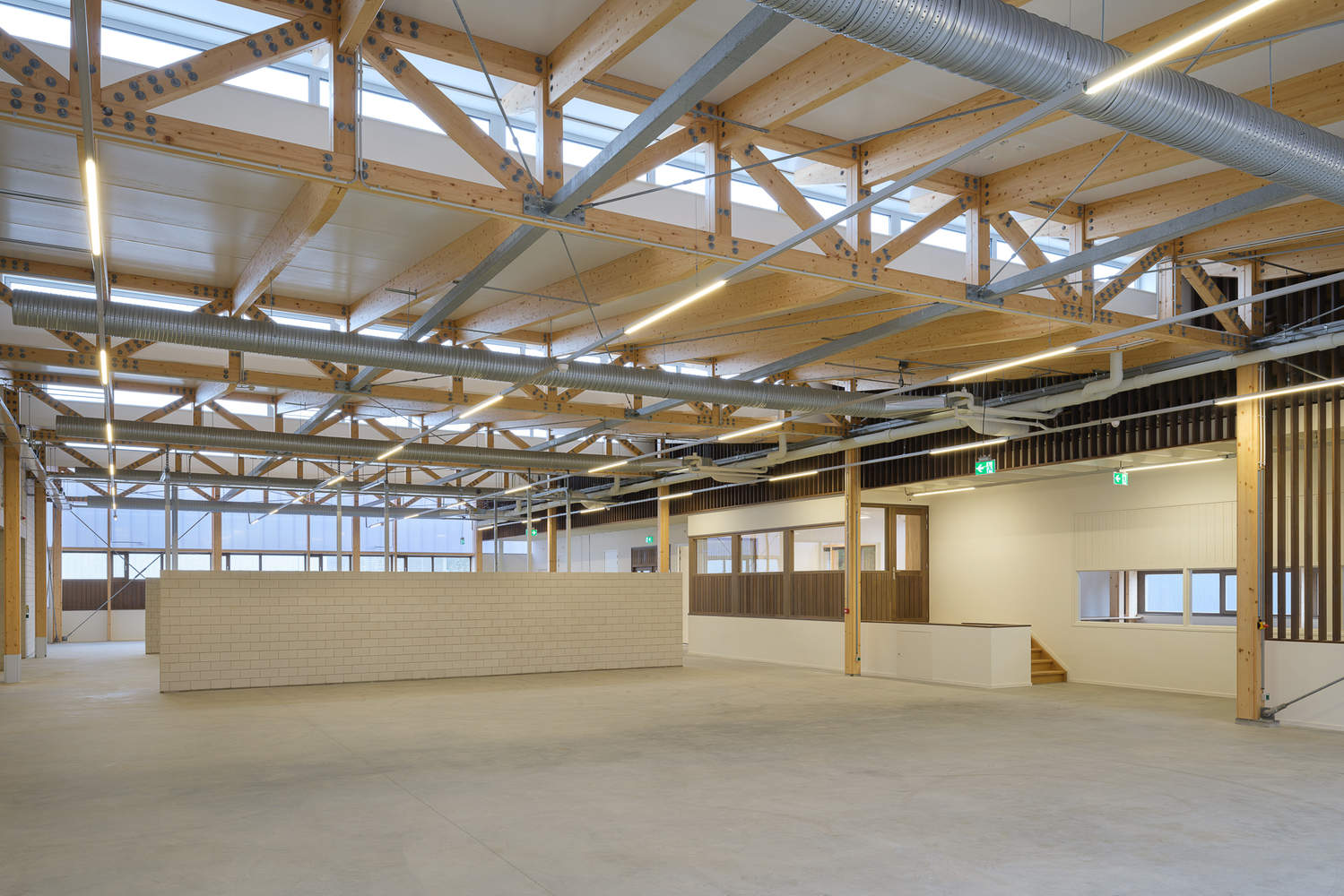 可持续性和循环性已成为近年来正义住房政策的基本支柱。商店的建筑由CLT木材制成的柱子和桁架组成。立面由未经处理的热改性木材和聚碳酸酯覆层制成。基座由预制环氧混凝土构件制成。