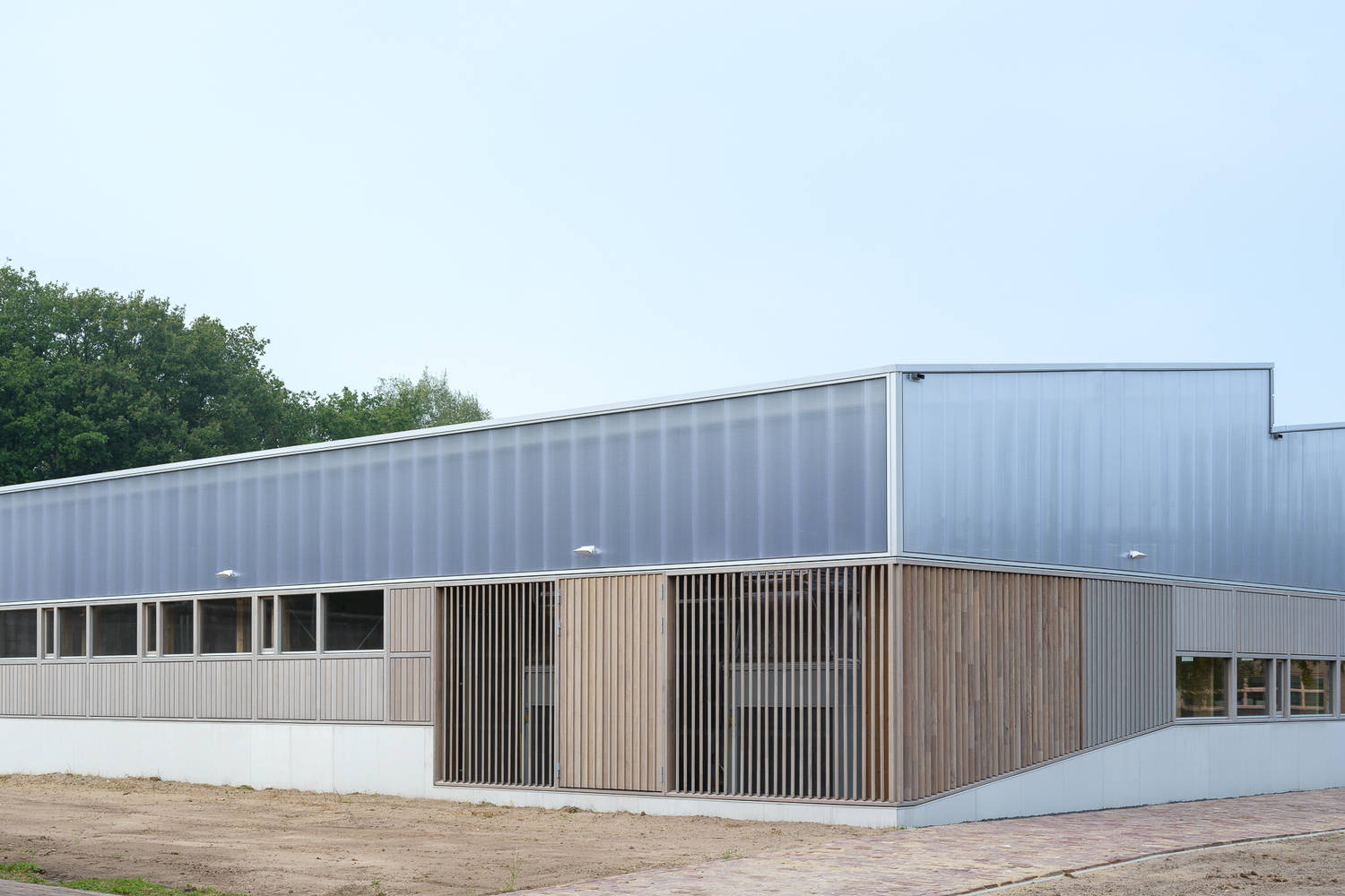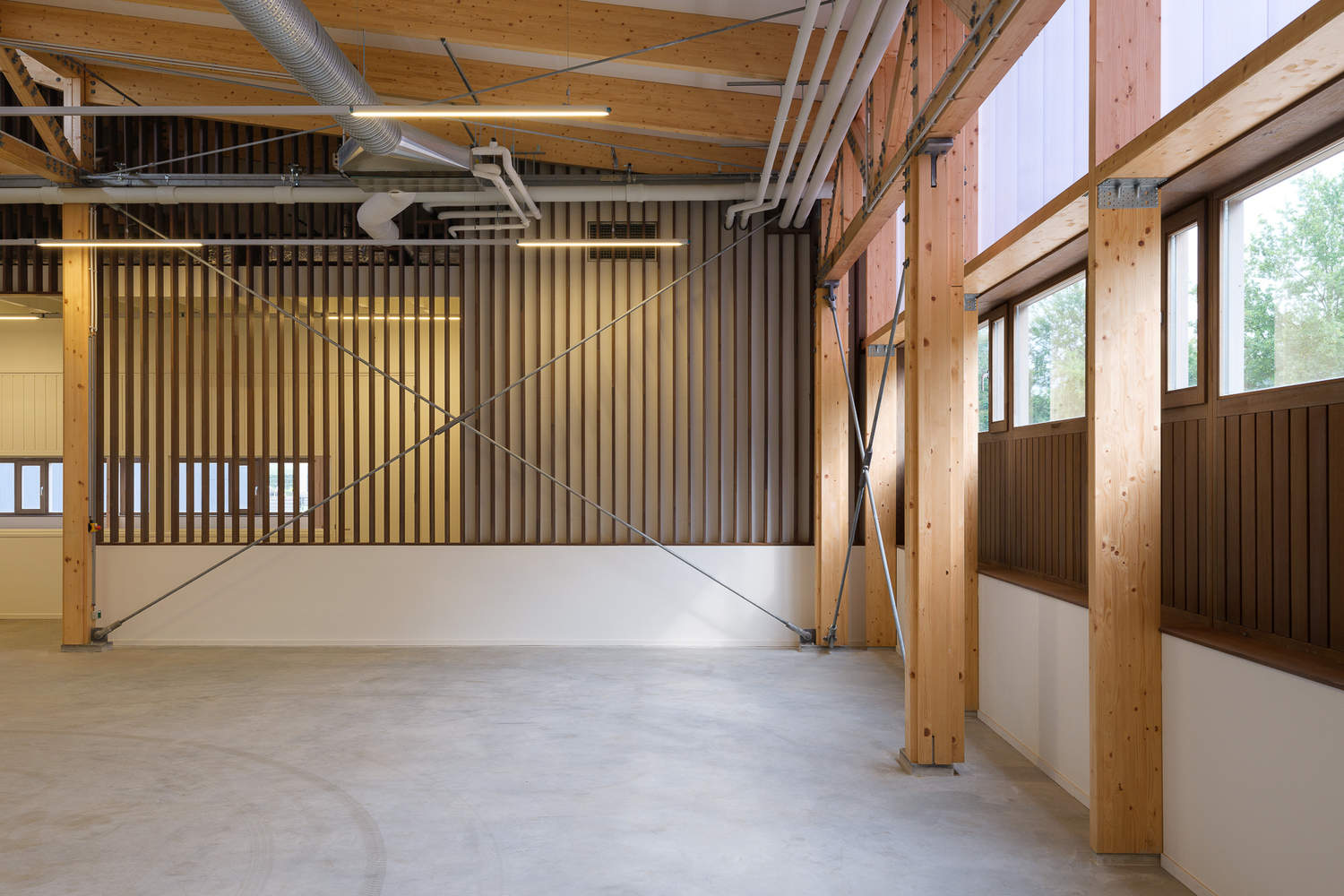 Sustainability and circularity have become a fundamental pillar in the justice housing policy in recent years. The construction of the store consists of columns and trusses made of CLT wood. The facades are made of untreated thermally modified wood and polycarbonate cladding. The plinth is made of prefabricated epoxy concrete elements.