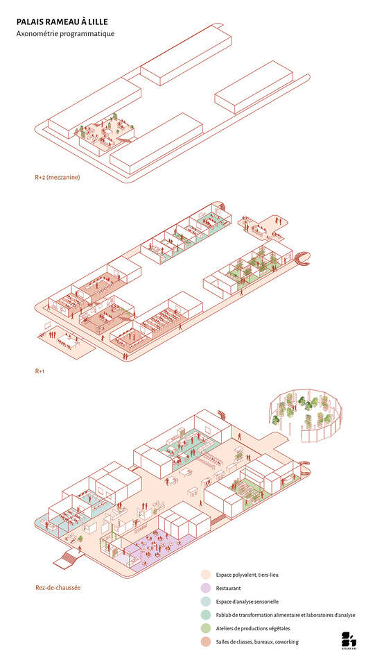 里尔市以25年的永久租约将拉莫宫移交给JUNIA(工程学校),JUNIA在尊重该地灵魂的同时赋予了它新的生命。凭借其列入名录的历史建筑和令人印象深刻的体量,它让我们想象出一个致力于高等教育的地方,并正在成为JUNIA校园的“乡村广场”。