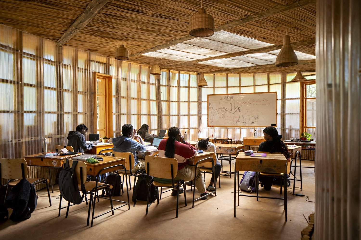 自然融入与村落概念:该项目的精髓在于其对自然环境的尊重与巧妙融入。建筑师将学校设计成一个“森林中的儿童村落”,这不仅是一个诗意的概念,也是对场地特性的深刻理解。建筑布局分散,教室置于森林空地中,最大限度地保留了原始的森林景观。教室的形态设计灵感来源于肯尼亚的乡土建筑,如马赛人的“manyatas”,有机而富有曲线,与周围的自然环境和谐共生。这种设计理念不仅美观,还创造了一种亲切、友好的学习氛围,让孩子们在自然中学习和成长。项目的整体规划体现了设计师对人与自然关系的深刻思考。
