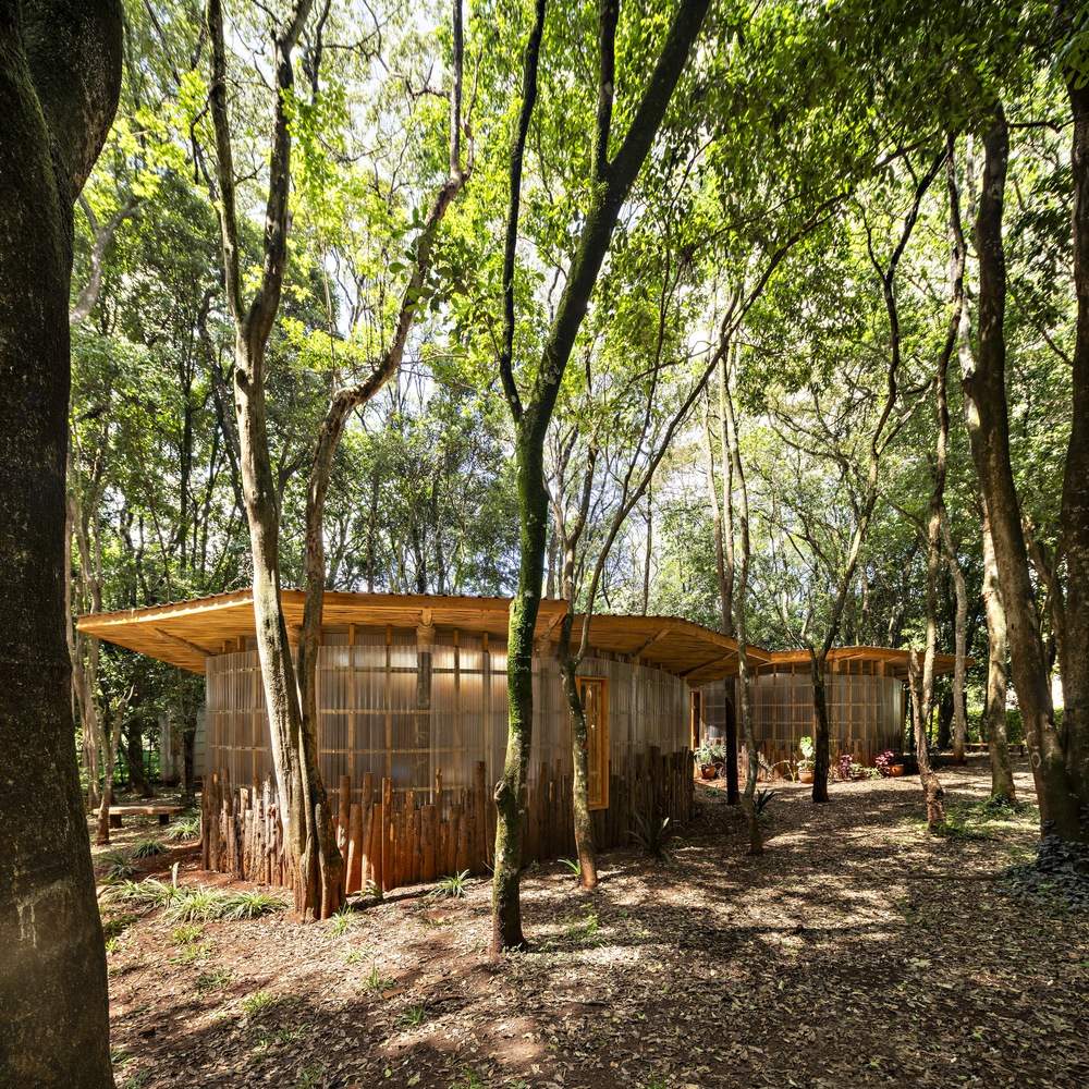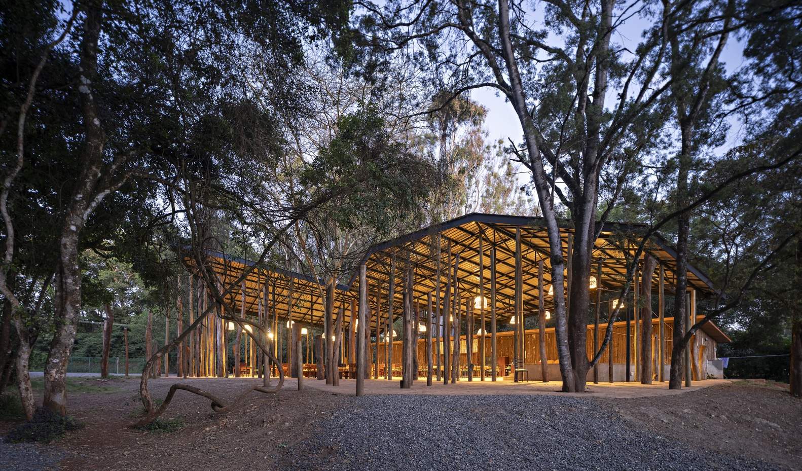 隐藏在森林中的儿童村-该项目由内罗毕的一所华德福学校委托进行,该学校与自然有着深厚的联系,并以人智学为基础。由于地块租约将在10年后到期,这些建筑需要快速建造,具有成本效益(成本为250美元/平方米),并具有临时使用寿命。