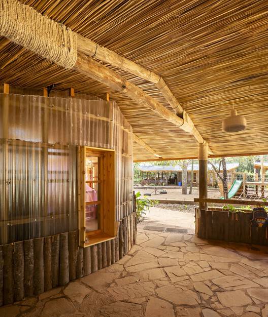 构建系统的设计具有适应性和协作性,涉及儿童、家长和教师。只要有可能,拆除教室的材料就会被回收利用:木地板和墙壁变成了护墙,屋顶瓦片被重新用作道路边界,等等。这种方法结合了创造力、可持续性和社区参与,创造了一个真正独特的学习空间。
