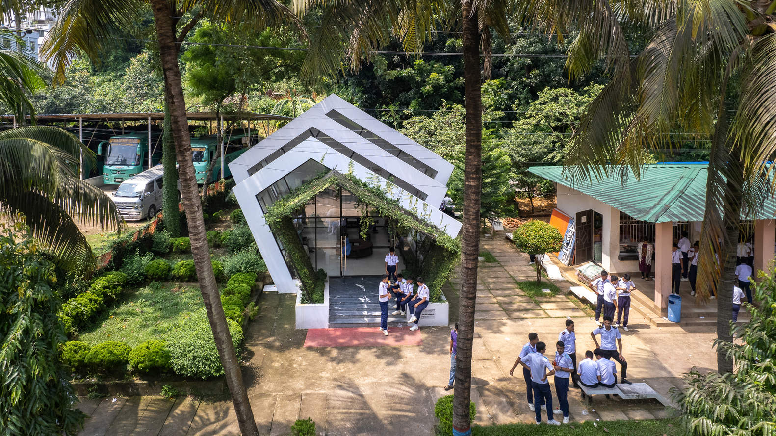 Text description provided by the architects. The Cantonment area in Chattogram is known as a serene environment wrapped with greeneries all around the institute's ground. Chattogram Cantonment Public College situated in DOHS - was established in 1978, and is administrated by the Bangladesh Army.