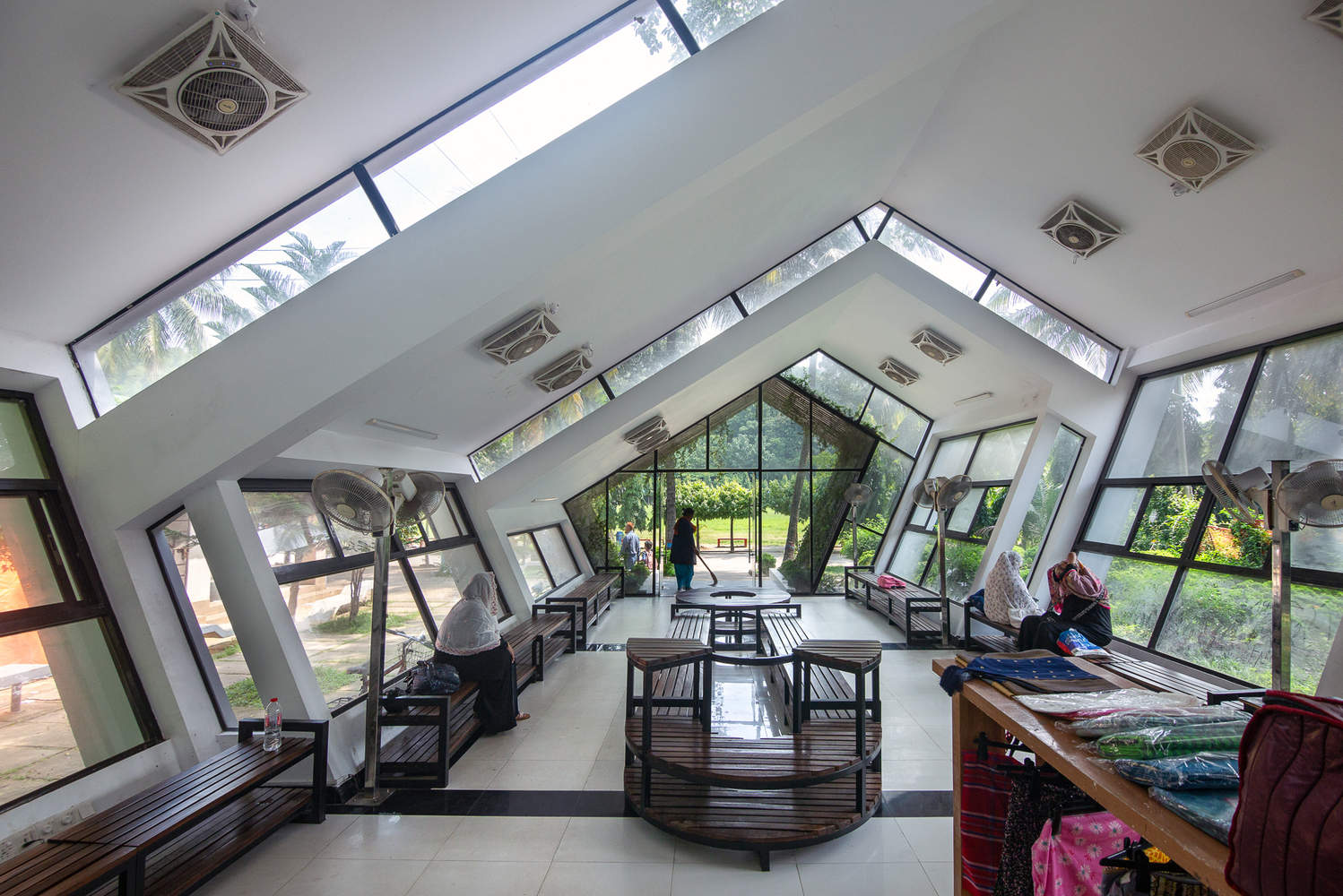 The entire building is supported by a frame structure system. No internal columns were used in this project. Using ceramic roof tiles was an effective solution for reducing the amount of heat that enters the structure. The building was divided with sleek roof-high glasses, which allowed the natural sunlight to flood in effortlessly. It's a perfect solution for users to bask in theluminanceof the sun while enjoying the comfort of an indoor space.