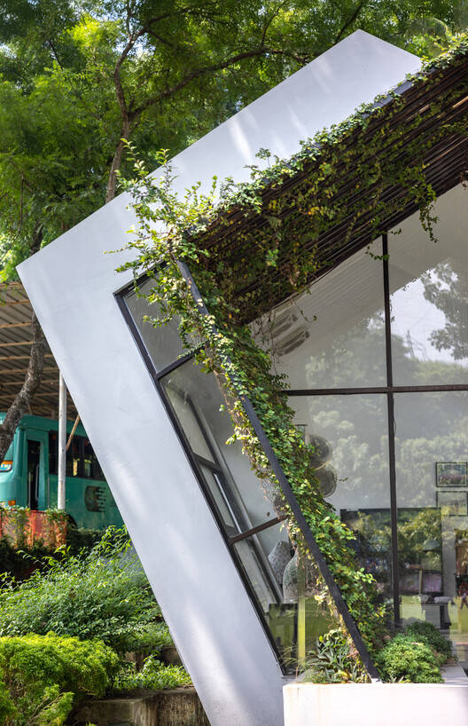 占地2000平方英尺,面积1100平方米。建筑面积有全高的倾斜幕墙和倾斜的天花板,营造出宽敞的错觉。该项目的主要目标是确保其功能和效率。使用全高幕墙的决定主要是为了将周围的绿色景观带入室内空间。倾斜的窗帘玻璃还可以防止阳光直射和高温。