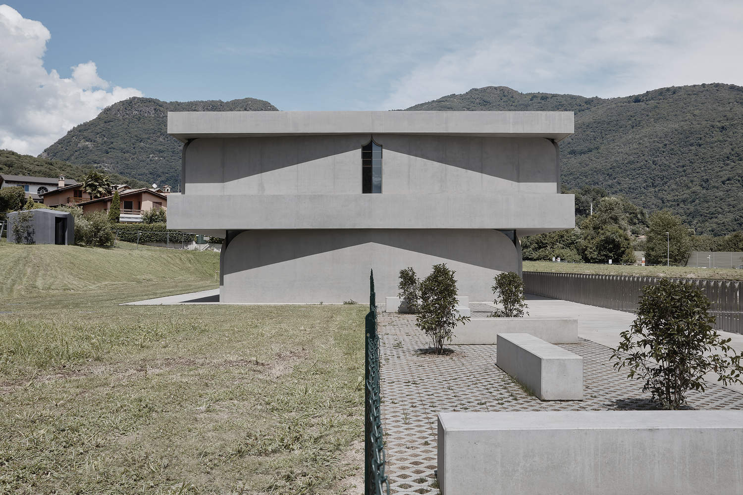 The wall becomes an object of interpretation for the project, characterizing the pedestrian walkway as a basement. The Kindergarten is primarily conceived as an infrastructural element that becomes an integral part of and concludes the elevated plinth walk. The building rests on the podium with the same expression by juxtaposing two new horizontal lines of the two floors of the School. These three parts have the same abstract language drawing three horizontal lines. From earth to sky the three lines gradually taper off. The identity of the intervention is created by this indissoluble tripartition, whose public vocation is on the podium. The building is a compact volume, organized on three floors. A ramp provided according to the planning project connects the floor of the future sports fields to the pedestrian walkway planned for the entrance to the School.