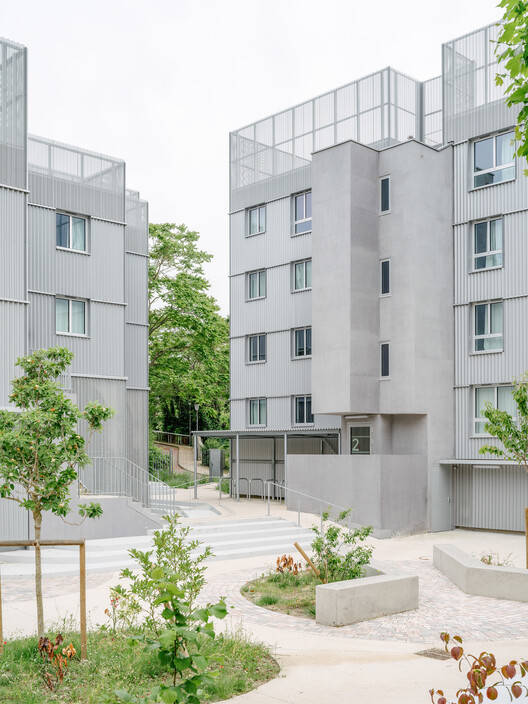 Text description provided by the architects. Originally built for the Crous in 1965, the Linandes Mauves residence consists of ten buildings arranged around a planted courtyard and connected to a lobby with spacious communal areas. The renovation of the previous phase was particularly complex due to the condition of the existing structure and the presence of asbestos throughout the plasterwork. Thus, the program for this operation focused on the demolition of the remaining four buildings to create new ones that are more suited to contemporary requirements. Our proposal, in contrast to the original brief, was based on a strategy of a fundamental transformation of the four existing buildings with architectural qualities and the addition of a new building to complete the program.