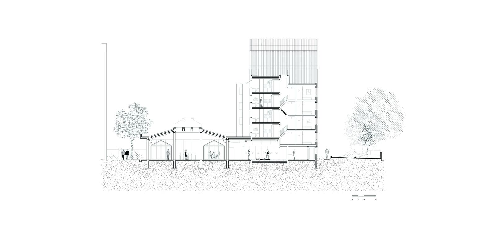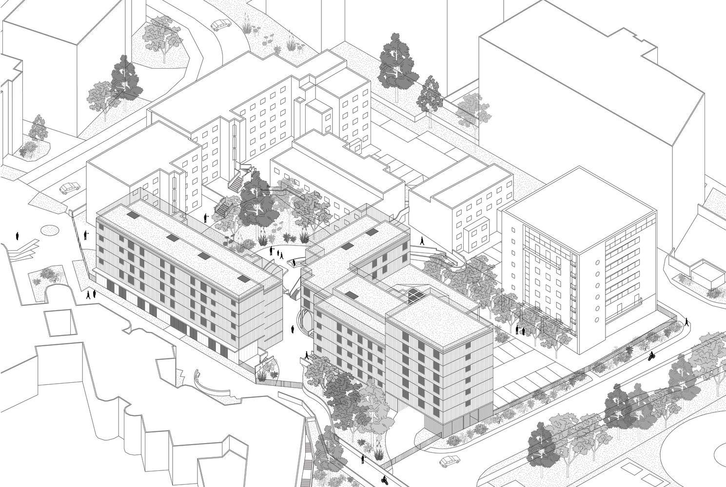 建筑师提供的文字描述Linandes Mauves住宅最初于1965年为Crous建造,由十栋建筑组成,围绕一个种植的庭院排列,并与一个带宽敞公共区域的大厅相连。由于现有结构的状况和整个抹灰工程中石棉的存在,前一阶段的翻修特别复杂。因此,这项行动的计划侧重于拆除剩余的四座建筑,以建造更适合当代要求的新建筑。与最初的简报不同,我们的提案基于一项战略,即对四座具有建筑质量的现有建筑进行根本改造,并增加一座新建筑以完成该计划。