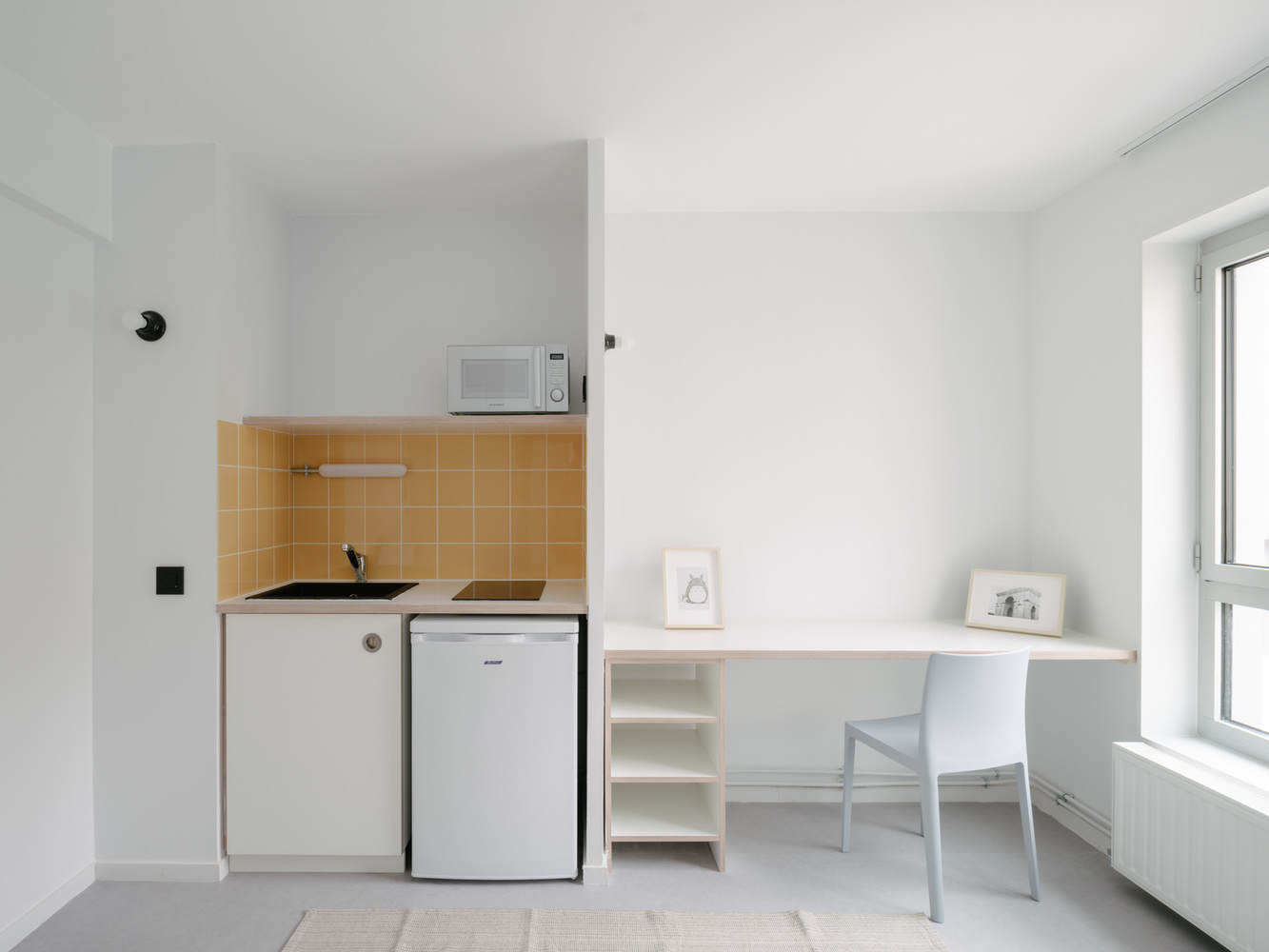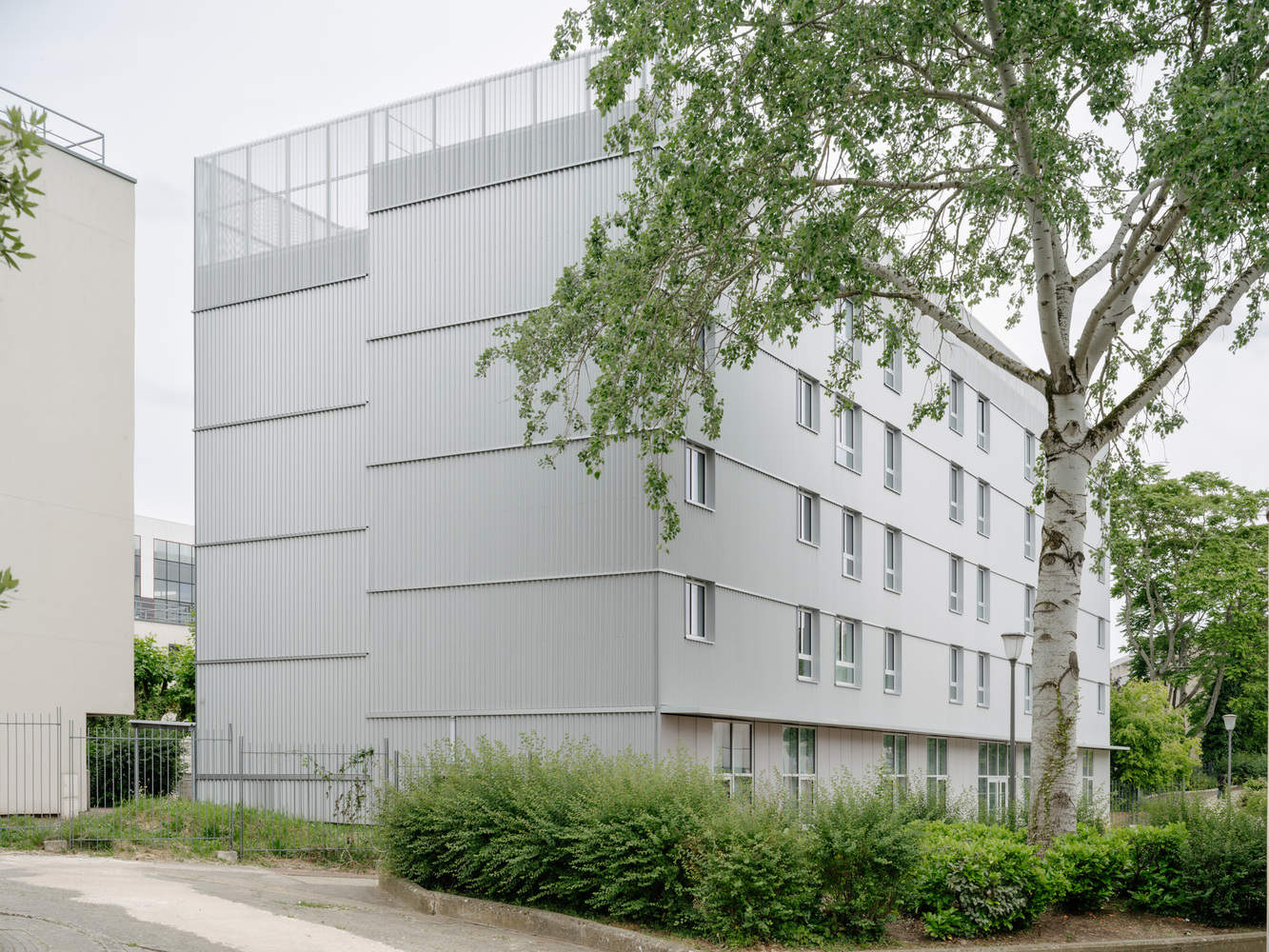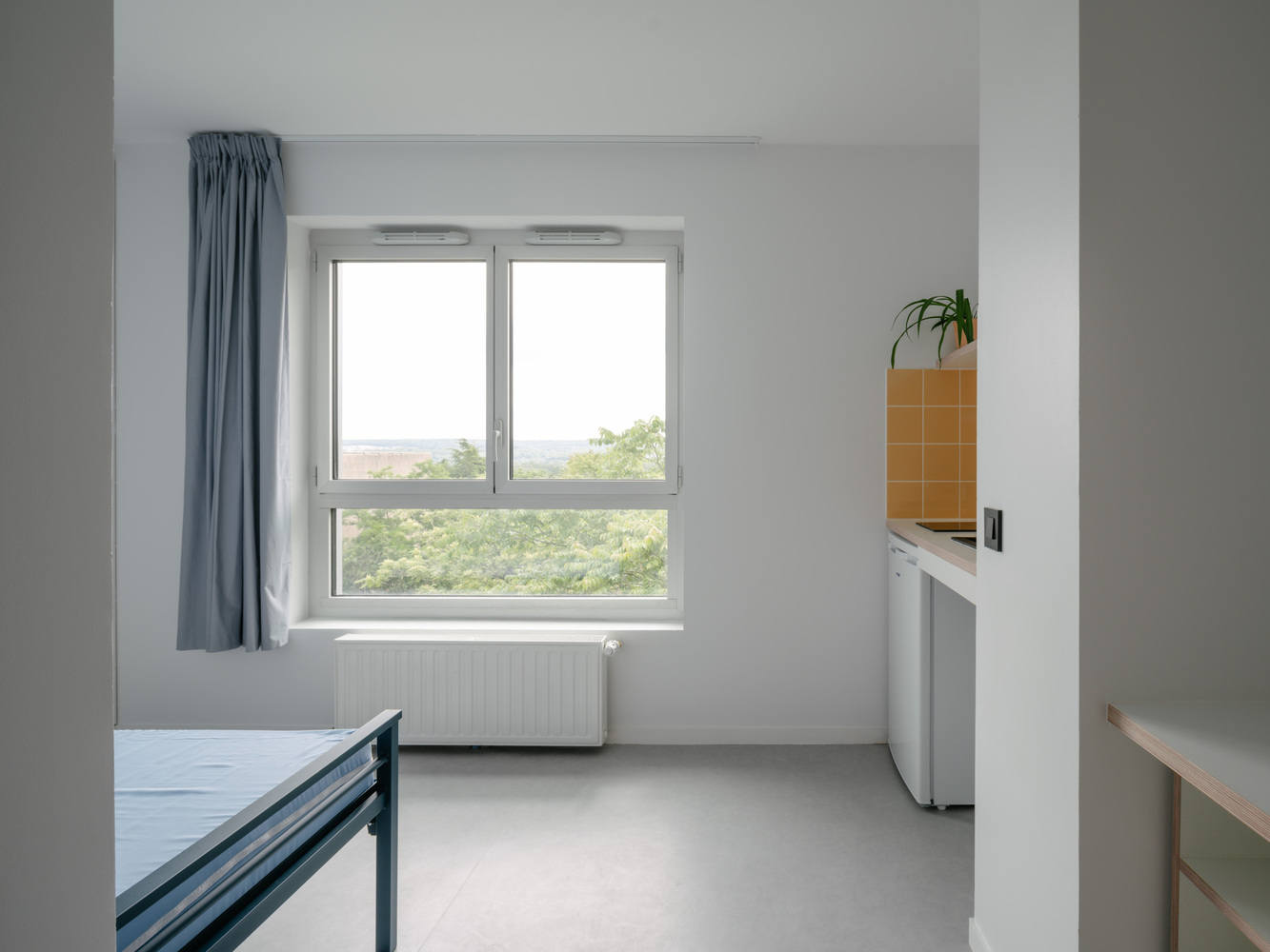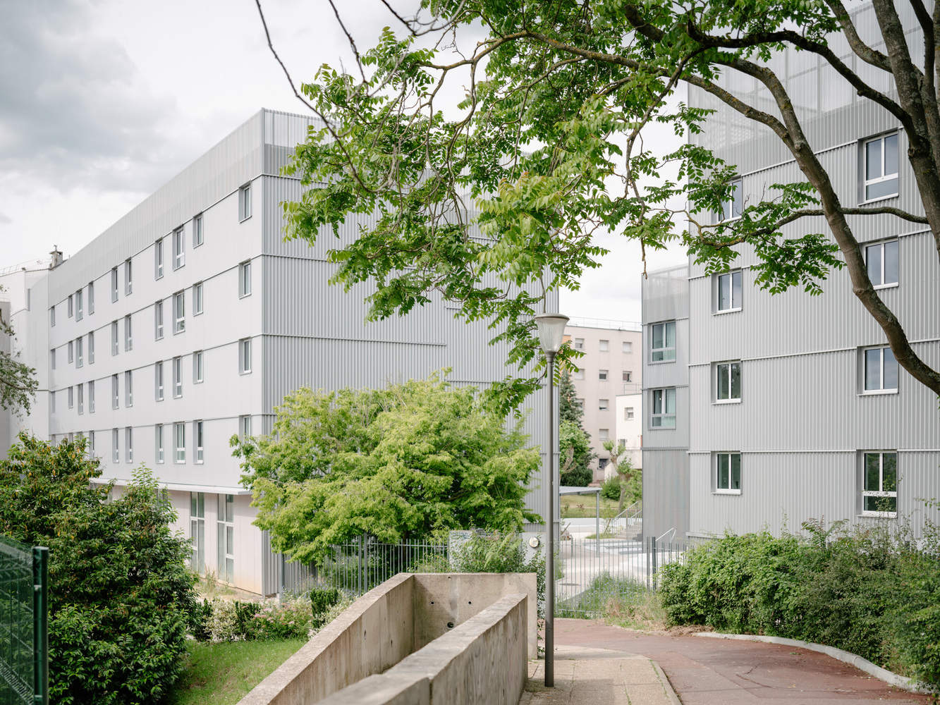 The overall design was guided by three main principles: *Re-interpreting the student residence on an urban scale by applying a new external skin to unify the existing buildings and adding a gable extension to assert its presence on the boulevard. *Exploring the potential uses of the dwellings, while acknowledging the specificities of their complex existing morphologies and developing a variety of architectural features: half-levels, a complex system of loggias, balconies, access, etc. *Revealing the structural conditions of the existing buildings as an economic and aesthetic variable. Unlike the previous rehabilitated residential complex, which featured conventional external insulation with light-colored plaster, this project introduces new materiality to transform the heritage without altering its character. This thermal improvement work is paired with a reconfiguration of the spaces to enhance the quality of life within the dwelling. Improvements to the reception of students throughout the residence are completed by a major refurbishment of the communal and administrative areas and a redesign of the outdoor services. The overall intervention carried out on an occupied site, offers a new face to the entire district through its prominent location on the Boulevard de la Viosne.