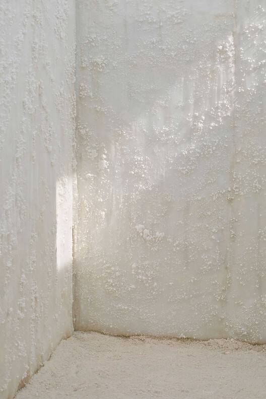 材料的创新与细节的精致:该项目在材料运用上展现了令人印象深刻的创新精神。尤其是盐板的制作过程,通过自然结晶和人工生物树脂的结合,创造出具有独特美学效果的建筑元素。这种对于材料的探索和创新,不仅体现在外观效果上,也反映了对可持续发展理念的深刻理解。从材料的选取到建造工艺的细节,都体现了设计者的精湛技艺和对品质的极致追求。通过对传统工艺的重新诠释和创新,该项目为建筑设计提供了新的可能性,也为未来的建筑发展指明了方向。