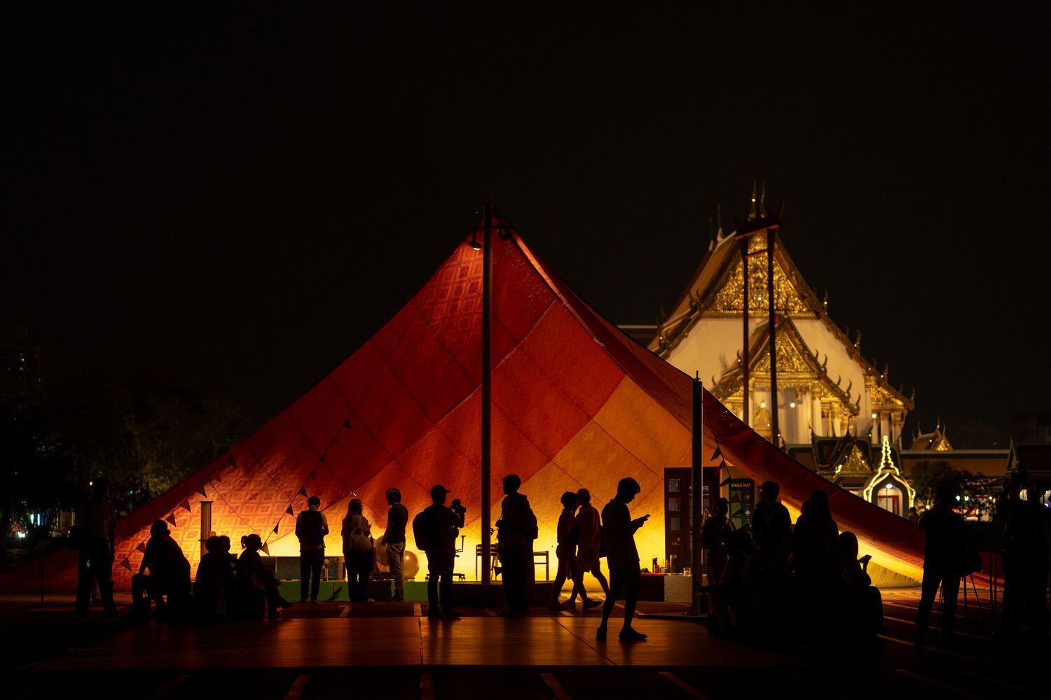 Mega Mat位于曼谷大都会管理局市政厅外的Lan Khon Mueang Town Square,是一个由500多个回收塑料垫组成的模块化作品,展示了在日常用品中使用回收塑料的可能性。