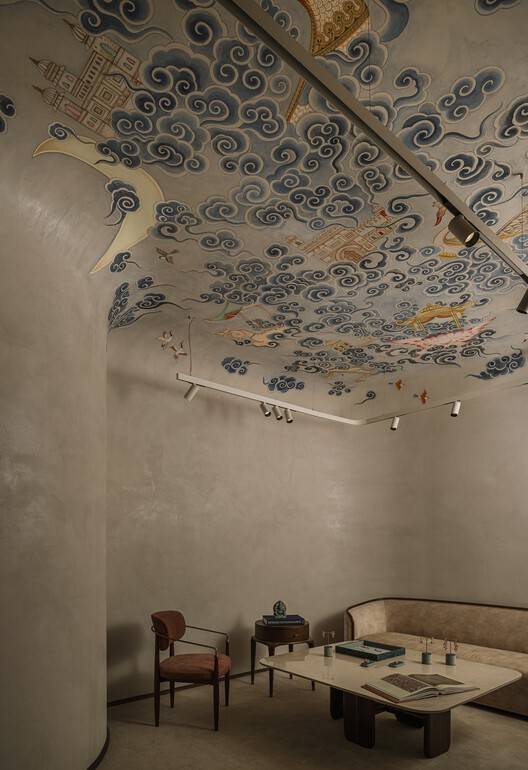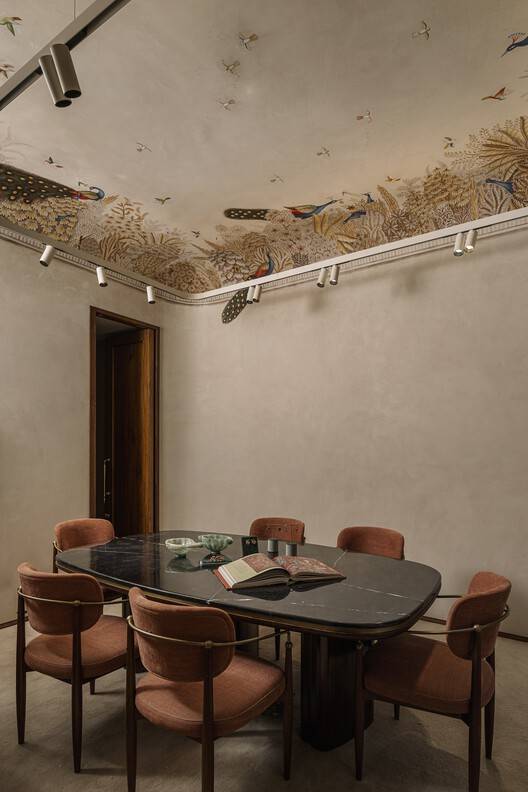 空间体验与功能布局的创新:该项目在空间体验方面展现出高度的创新性。它并非仅仅是一个珠宝店,而是一个融合了博物馆、零售和体验中心的多功能空间。尤其是Meenakari博物馆的设置,将珠宝品牌提升到文化传承者的地位,为顾客提供了更深层次的文化体验。楼层之间的功能布局也十分巧妙,从一楼的博物馆到地下一层的零售空间,再到上层的办公区域,以及顶层的餐厅,空间流线流畅自然,满足了不同人群的需求。私人定制的零售空间以及精美的壁画,更是为顾客创造了尊贵而神秘的购物体验。