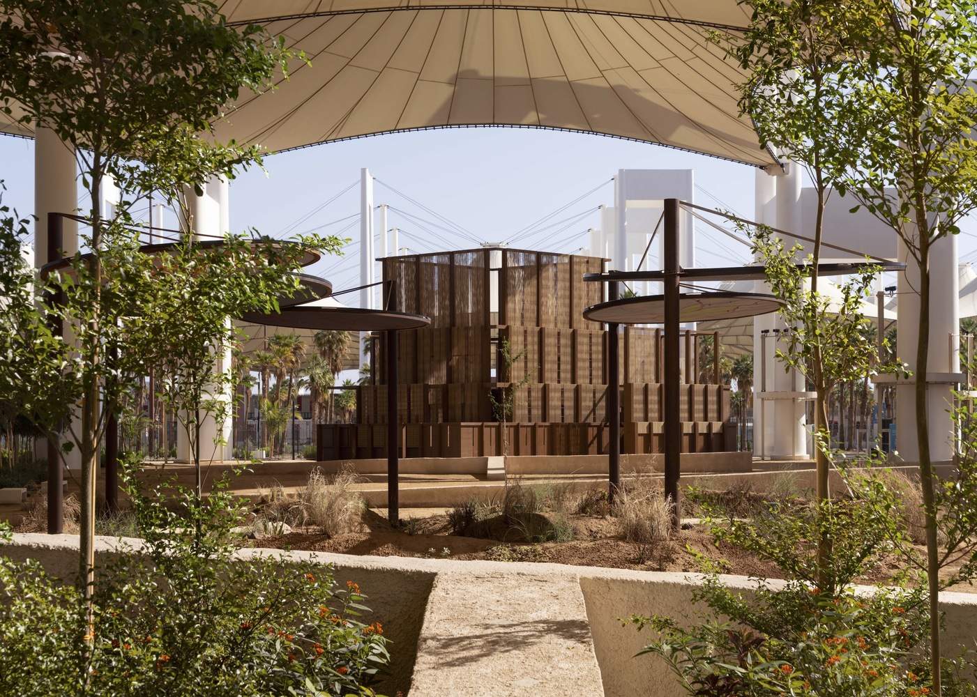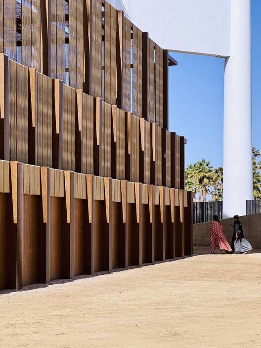 穆萨拉位于受棕榈树种植园布局启发的景观网格内,当地居民数千年来一直将其用作遮荫处,它与更广阔的沙漠环境进行了对话。